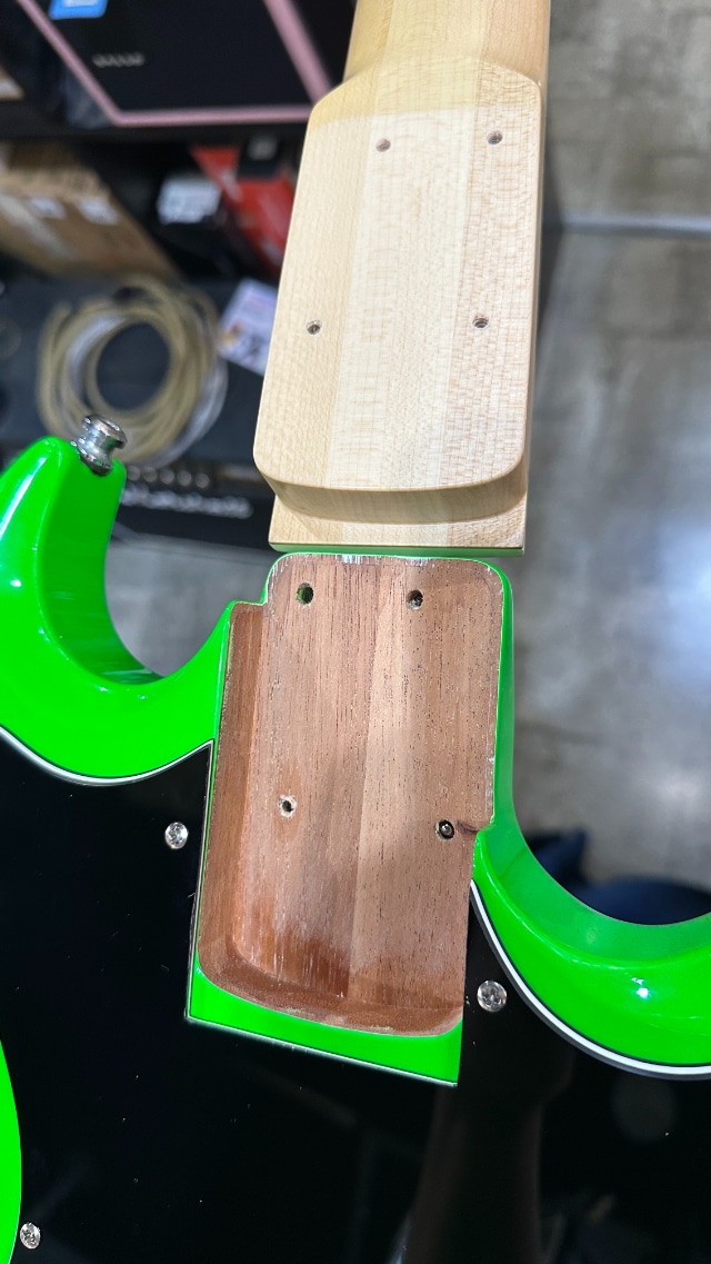 杢目からの判断とはなりますが、マホガニーボディのメイプルネック / ローズウッド指板といったウッドマテリアルが採用されていると思われます。