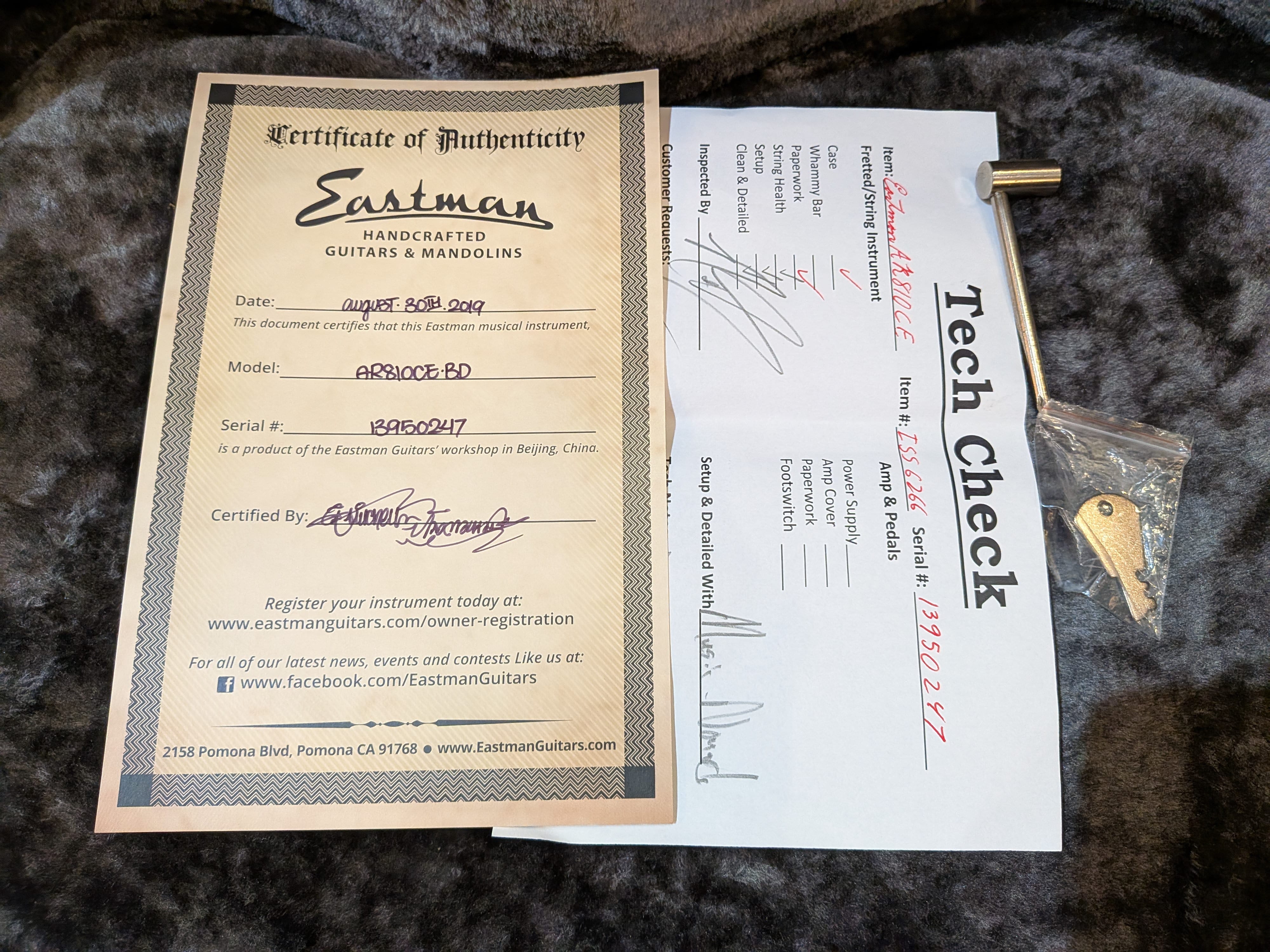 状態としましてナットフレットが交換。軽い色焼けやフレット溝付近の細かな指板のチップや細かな擦り傷、打痕等は見られますが目立つダメージもなく良好な状態をキープ。ネックコンディションも良好でトラスロッド余裕有、フレット残9割ほどと演奏面は良好です。オリジナルハードケース、認定書が付属いたします。