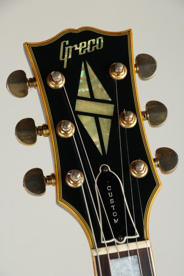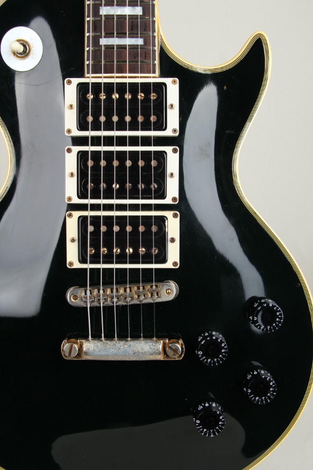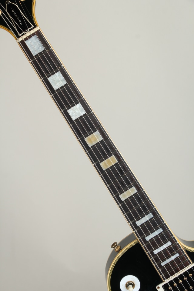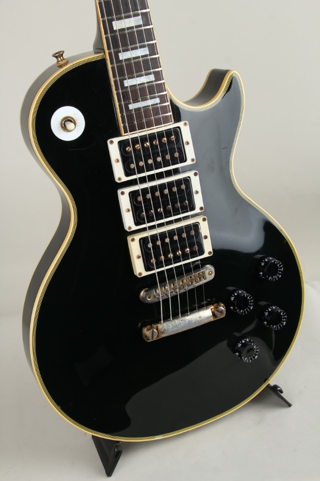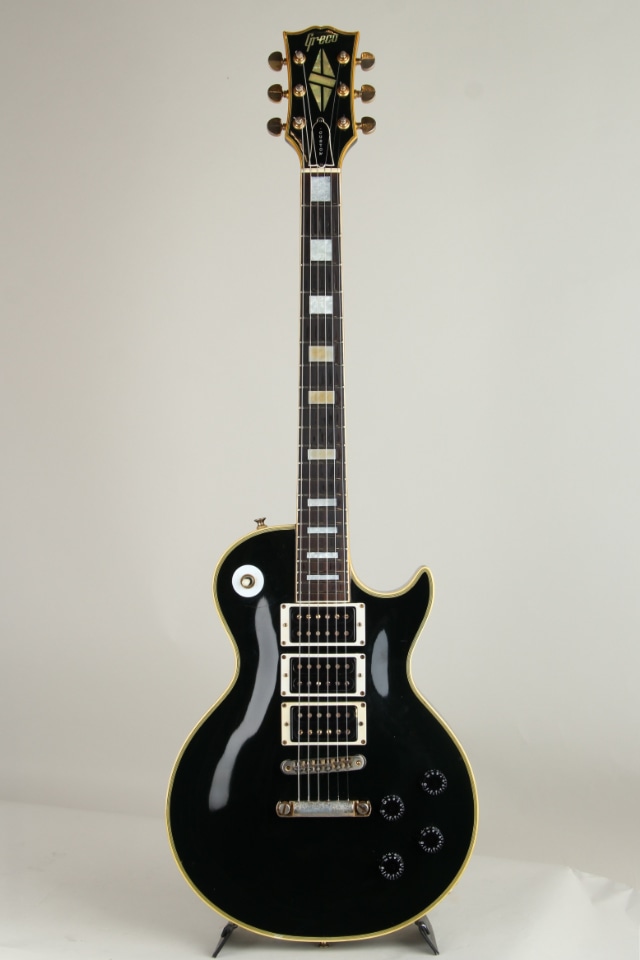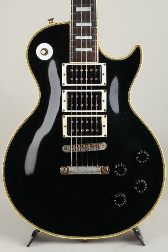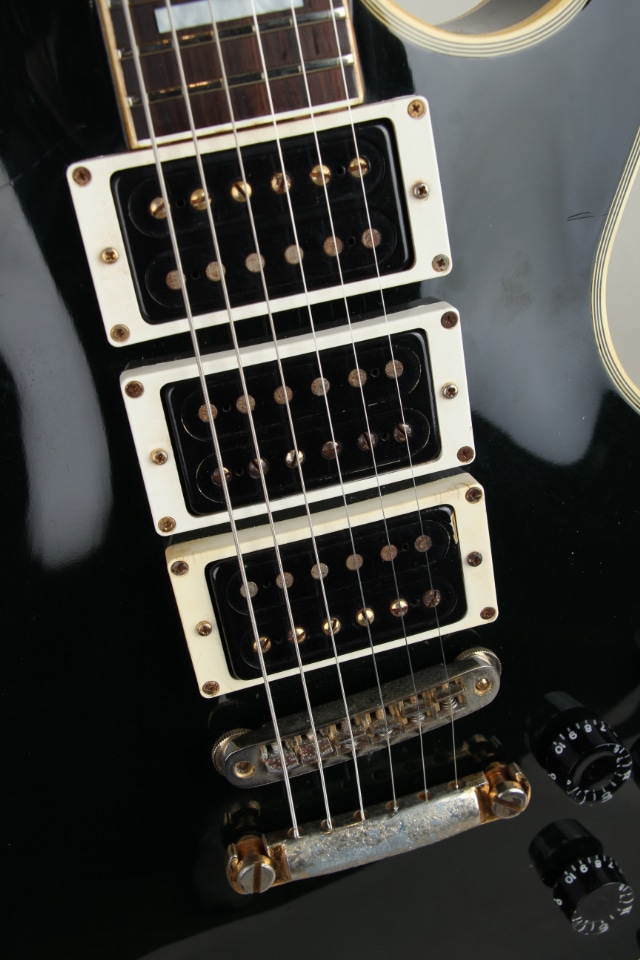 当時のカタログからメイプル1ピーストップの1ピースマホガニーボディ、メイプルネックのエボニー指板といった豪華なウッドスペックを採用、ピックアップにはオリジナルのハムバッカーピックアップを3基搭載しており、3-Wayのトグルスイッチによりリア / リア&ミドル / フロントといった多彩なサウンドバリエーションのアウトプットが可能となっております。2点止めトラスロッドカバー、指板のブロックインレイ、ヘッドのダイヤモンドインレイ、さらにはフレットの両端にバインディングが被せられたニブフレットバインディングといった非常に細かな仕様までも再現されているなど当モデルに対する高い熱量が伺えます。