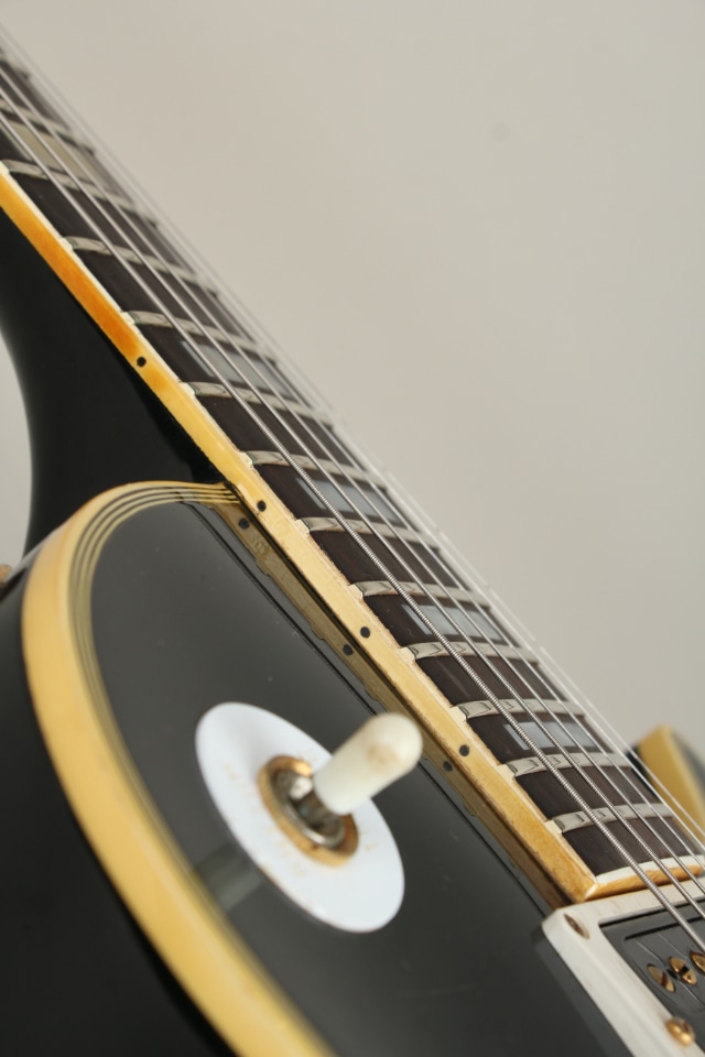 現状のプレイアビリティに関して、ネック状態は問題無し、トラスロッドは効き良好左右に余裕あり、すり合わせが行われているため部分減りはございませんがオリジナルフレットにはかなりの消耗が見られ板っぽくなっており残量といたしましては平均して5割ほどかと思われますが、現状で致命的な音つまりなどは無くチョーキング時にも演奏面でも問題はございません。金属パーツのくすみや劣化あり、塗装面にキズや打痕、塗装チップなどございますが外観を大きく損なうようなダメージはございません。