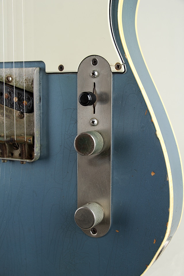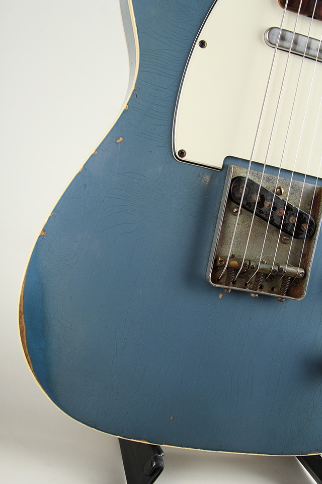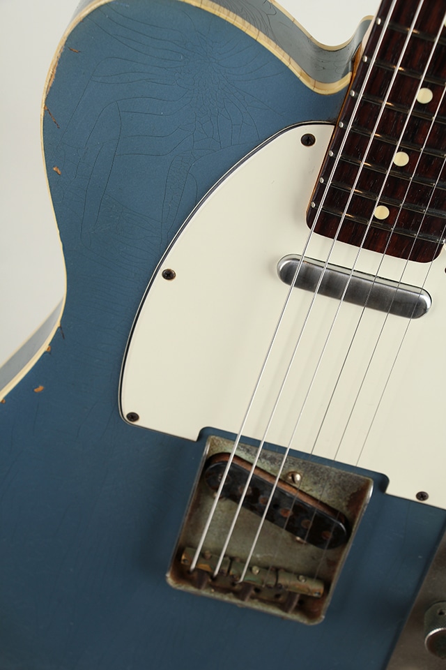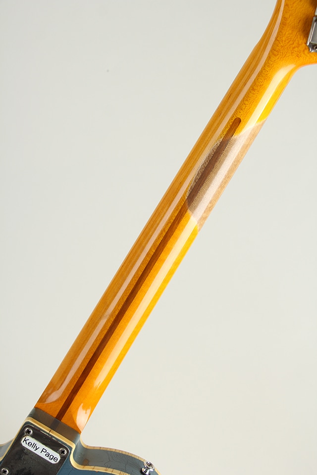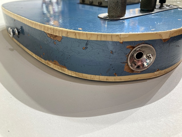 青みのフェイドしたLake Placid Blueがとてもクールで、全体に施された打痕やウェザーチェック、塗装の痩せ等の強めのレリック加工もとても自然で、貫禄のあるルックスです。