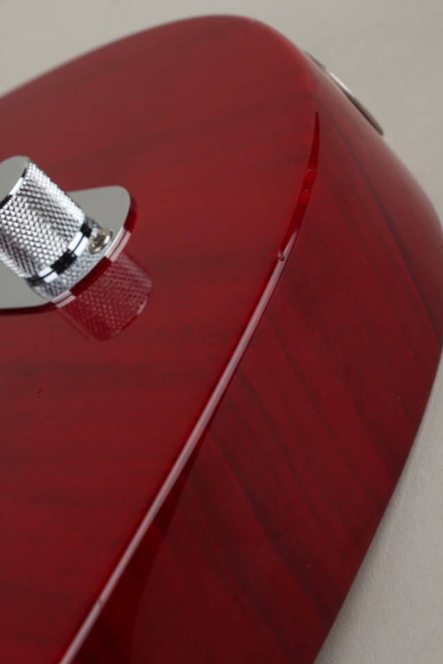 ウッドマテリアルには、マホガニーボディのメイプルネック / ローズウッド指板を採用、印象的なクレイドットインレイに加えて、指板にはネック材と指板材の表面が湾曲したラウンドローズ指板となっております。