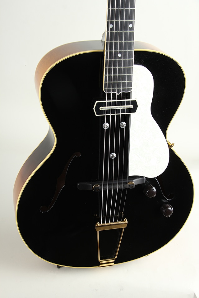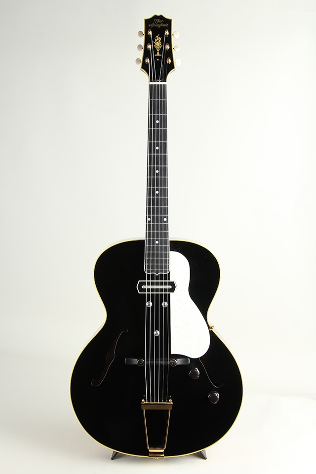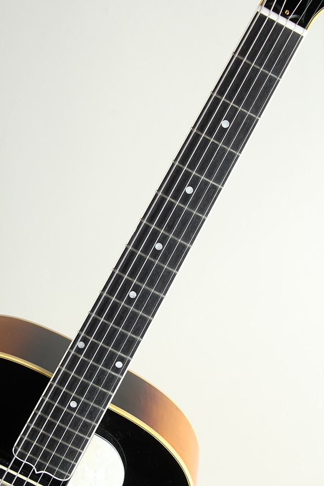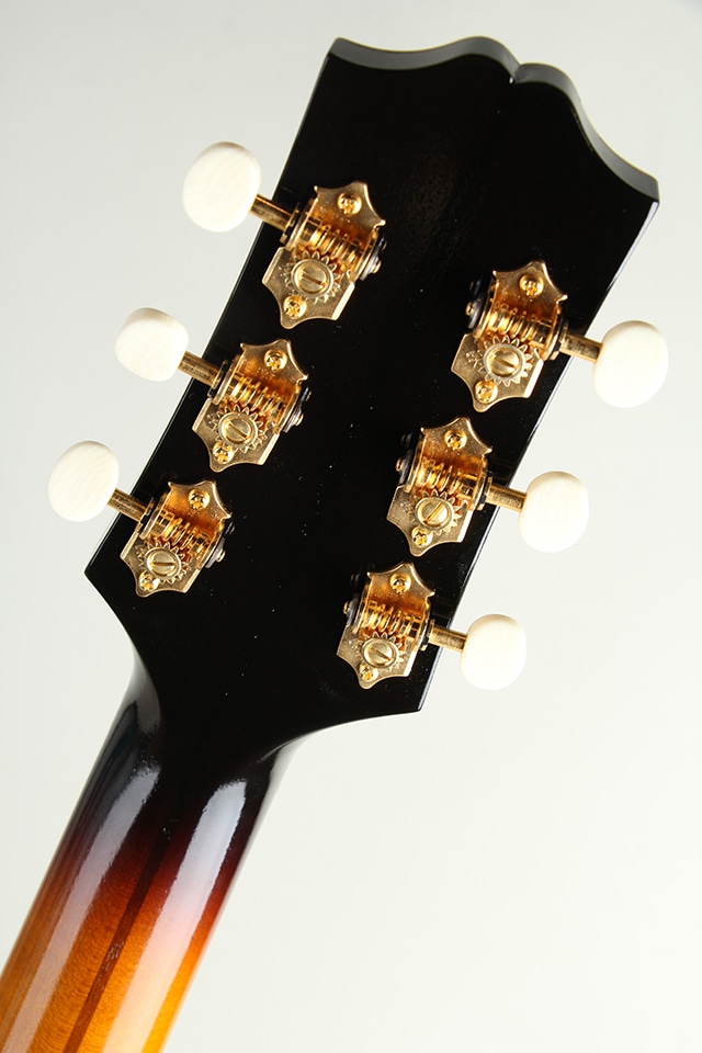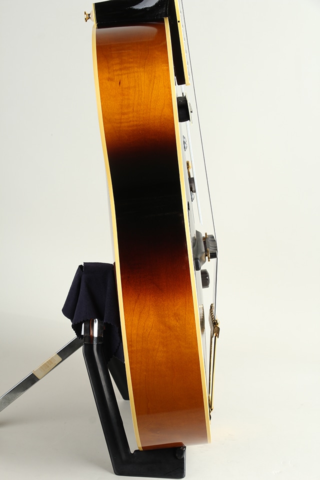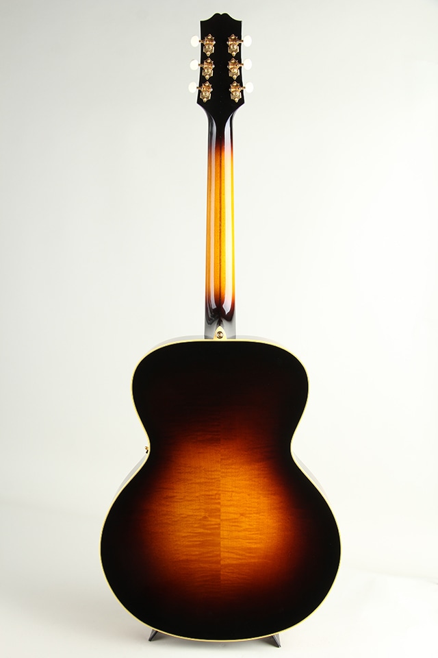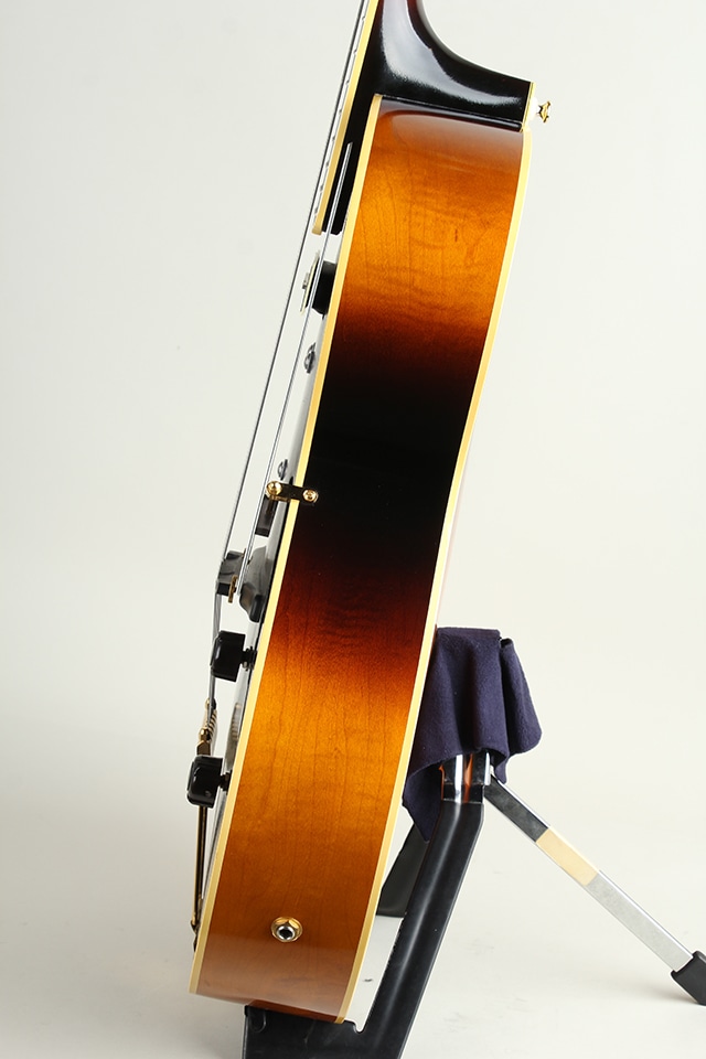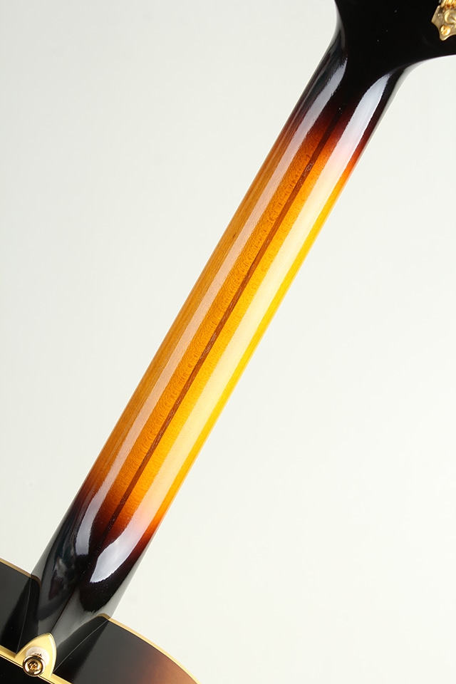 16インチ時代の戦前L-5をモチーフに人気の高いドットポジションマークを持つ1928年仕様が採用されたモデルです。ボディは単板のスプルース・トップ、単板のハードメイプル・サイド&バック、ハードメイプルネックにエボニー指板といったこだわりのウッドスペックが採用。当機はチャーリークリスチャン・ピックアップを搭載し、カラーもボディトップはブラック、その他はサンバーストといった別注仕様でオーダーされた1本です。