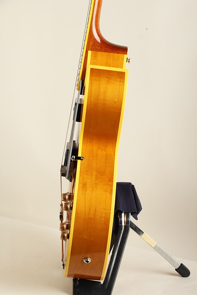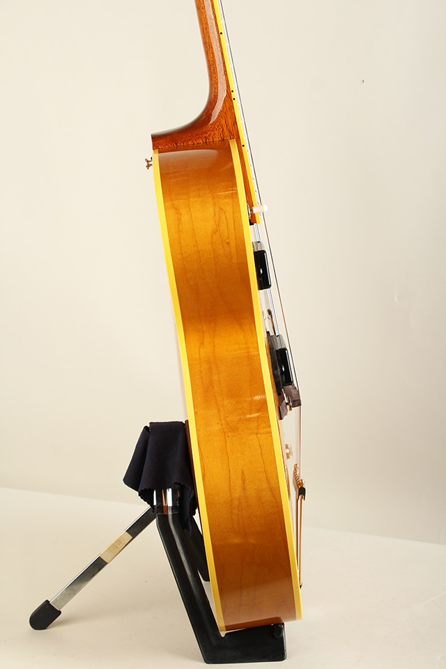 カラッとした響きに体に感じる強い振動が非常に心地よさを感じさせてくれます。その他、サウンドの芯とサスティーン向上やハウリング抑制を目的として、Detroit Jazz Blockと名付けられたスプルース材をブリッジ裏に配す等、見えないサウンドへの拘りも抜かりがありません。
