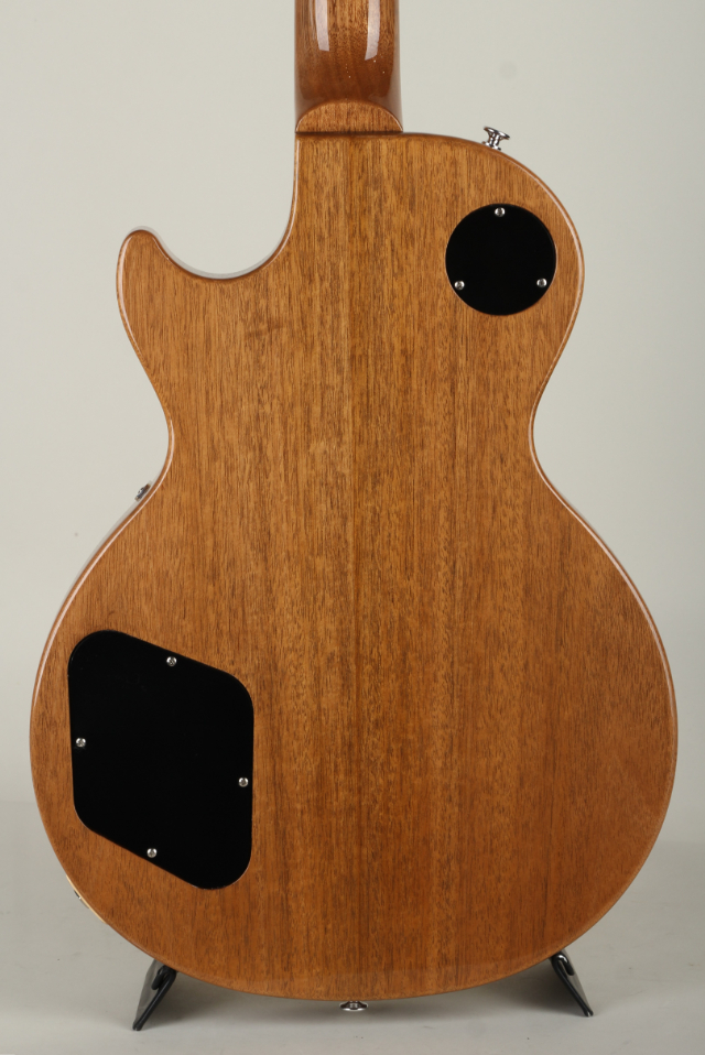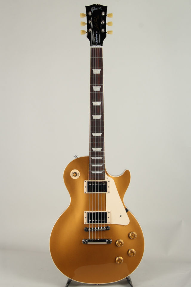 50年代から継承される伝統的なカラーリングである"Gold Top"フィニッシュを採用した当モデルは、メイプルトップのマホガニーボディにセットネック構造でジョイントされたマホガニーネック、指板にはローズウッドを使用、軽量化を目的としたウエイトリリーフが行われていない完全なるソリッドボディ、塗装にはニトロセルロースラッカーを使用しております。