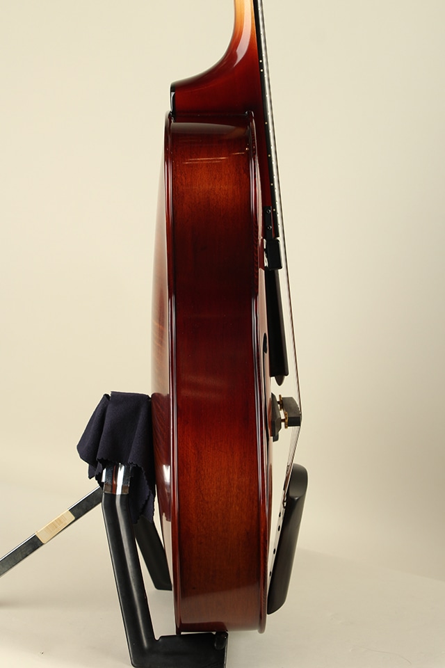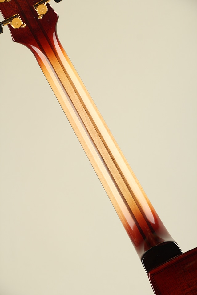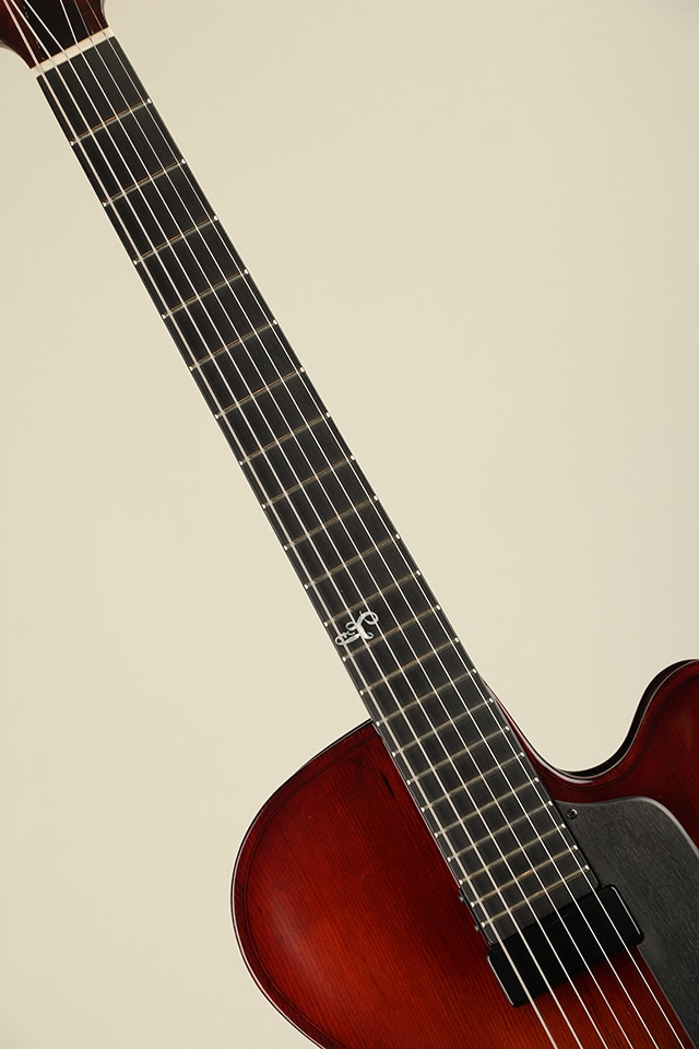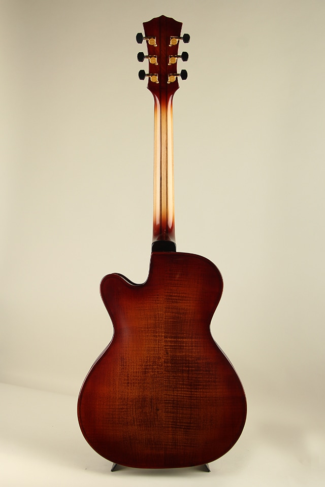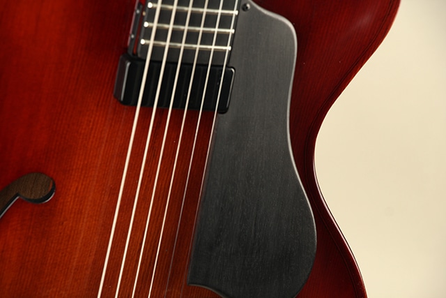 単板削り出しのスプルーストップにフレイムメイプルサイドバック、メイプル5pcsネックにエボニー指板といったウッドスペックが採用。バイオリンを強く意識させるボディエッジ周りやニス仕上げを採用することにより、アンティークバイオリンのような高級感溢れる独特な風合いを持っております。