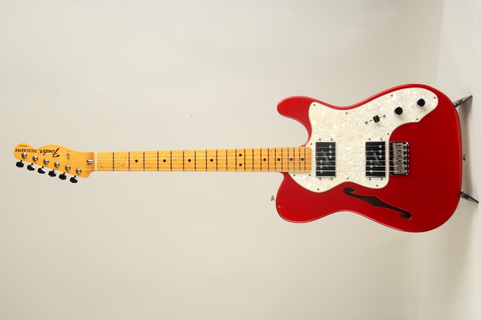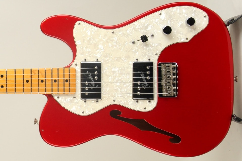フェンダーのオリジナルハムバッカーピックアップ搭載の72年リイシューモデル、当時の通常ラインナップには無い限定カラーの72 Telecaster Thinlineでございます。