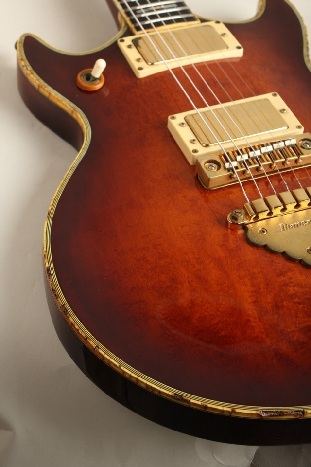 メイプルトップのマホガニーボディ・メイプルネックに、エボニー指板、22フレット・ミディアムスケールとレスポールに通ずるウッドマテリアルにアイバニーズオリジナルの Ibanez Super 80 ハムバッカーピックアップを2基搭載しております。
