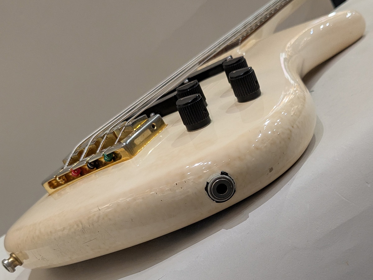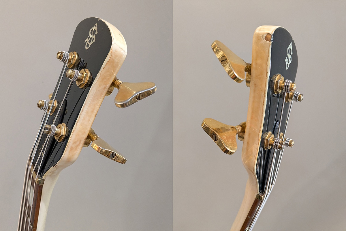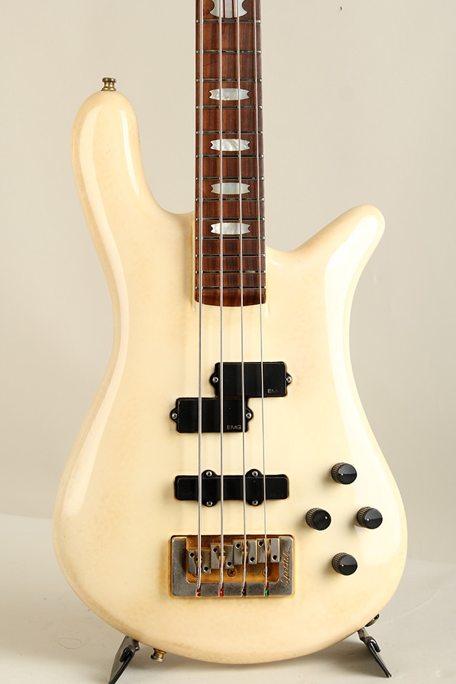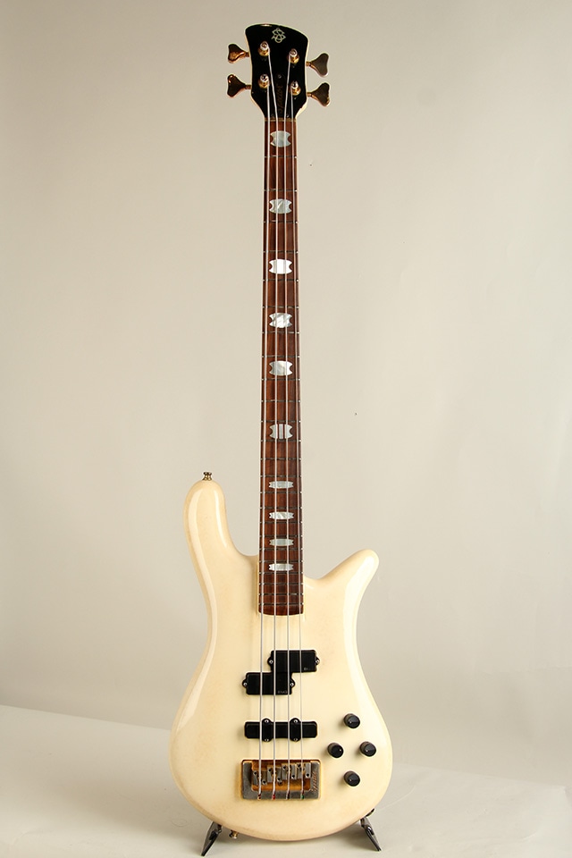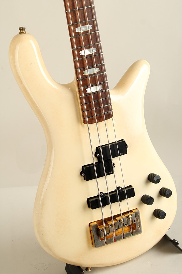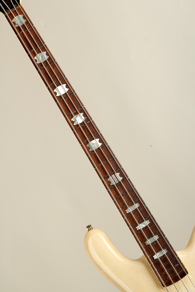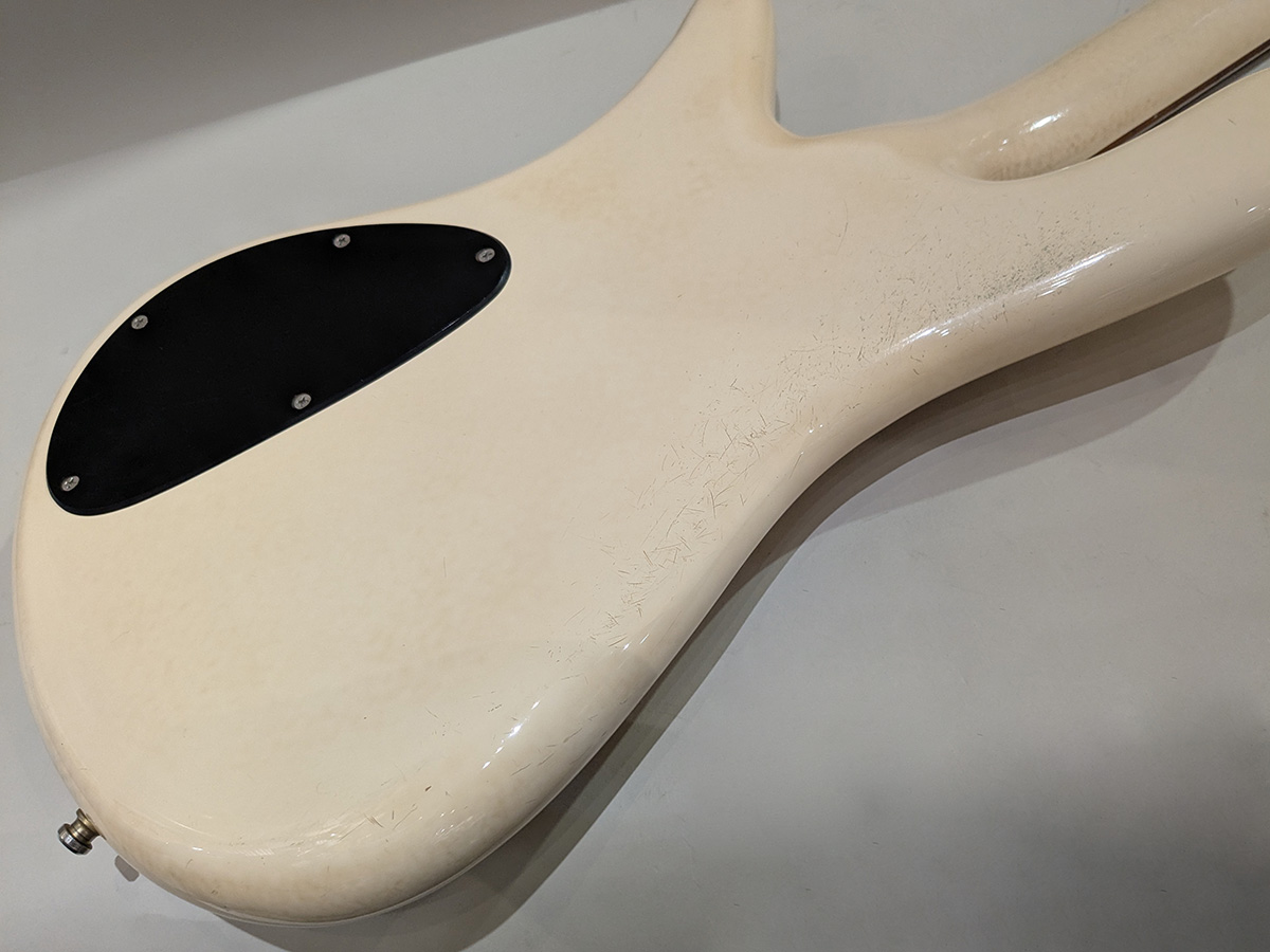 クレーマー後期の1989年頃製造のNS-2。メイプルウィングボディ、スルー構造のメイプル3pcネック/パーフェロー指板、ピックアップにはEMGが搭載。芯の通った力強いボトムレンジに、スルー構造らしい適度な倍音感と、湾曲したボディシェイプから得られる剛性を高めたタイト感のバランスがサウンドへ加わり、太くキレの良さと、発音のハッキリとした明瞭感を生んでおります。またボディシェイプはストレスフリーなフィット感により、高い演奏性を提供致します。