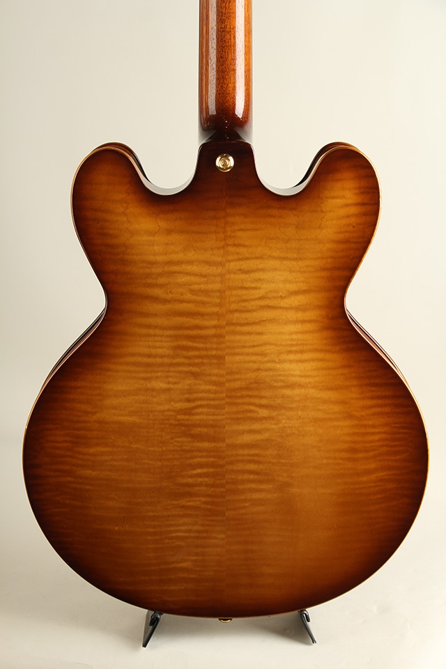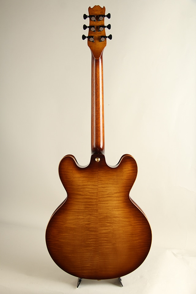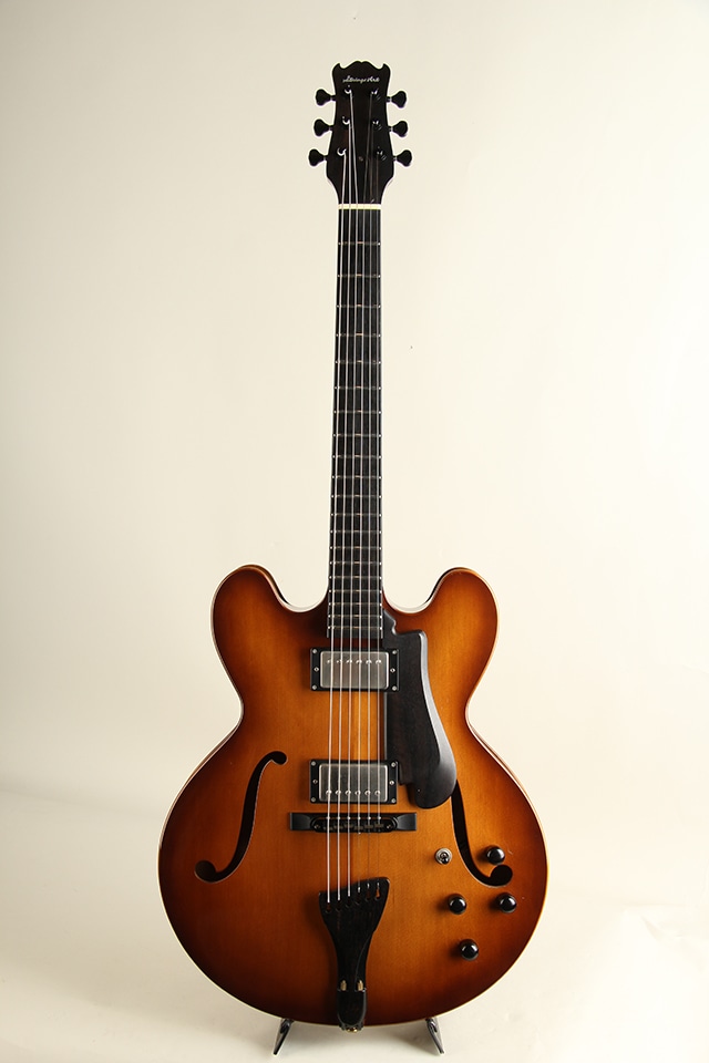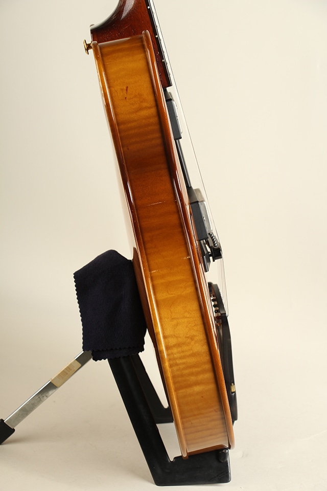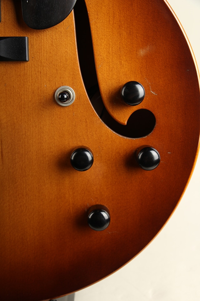 セミホロー構造ですがセンターブロックはそれほど大きくなく、とても豊かなエアー感と生鳴りを感じさせてくれます。出音もES-335ほど固くなくフルアコに準ずるメローな質感をしっかり持っております。