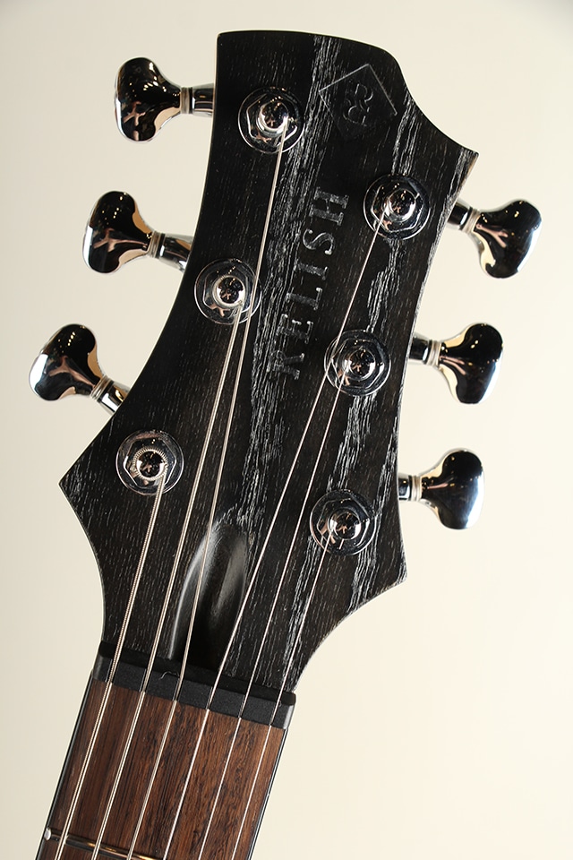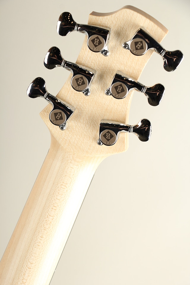 1ピースの削り出しアルミフレームに7層のプライウッドを前後に接着したオリジナルシェイプ。耐久性に優れたステンレスフレットを搭載し、RFコネクタによるソルダーレスで容易に交換可能なピックアップ仕様もレリッシュの特徴です。当機はタッチセンサーによるピックアップセレクター仕様です。