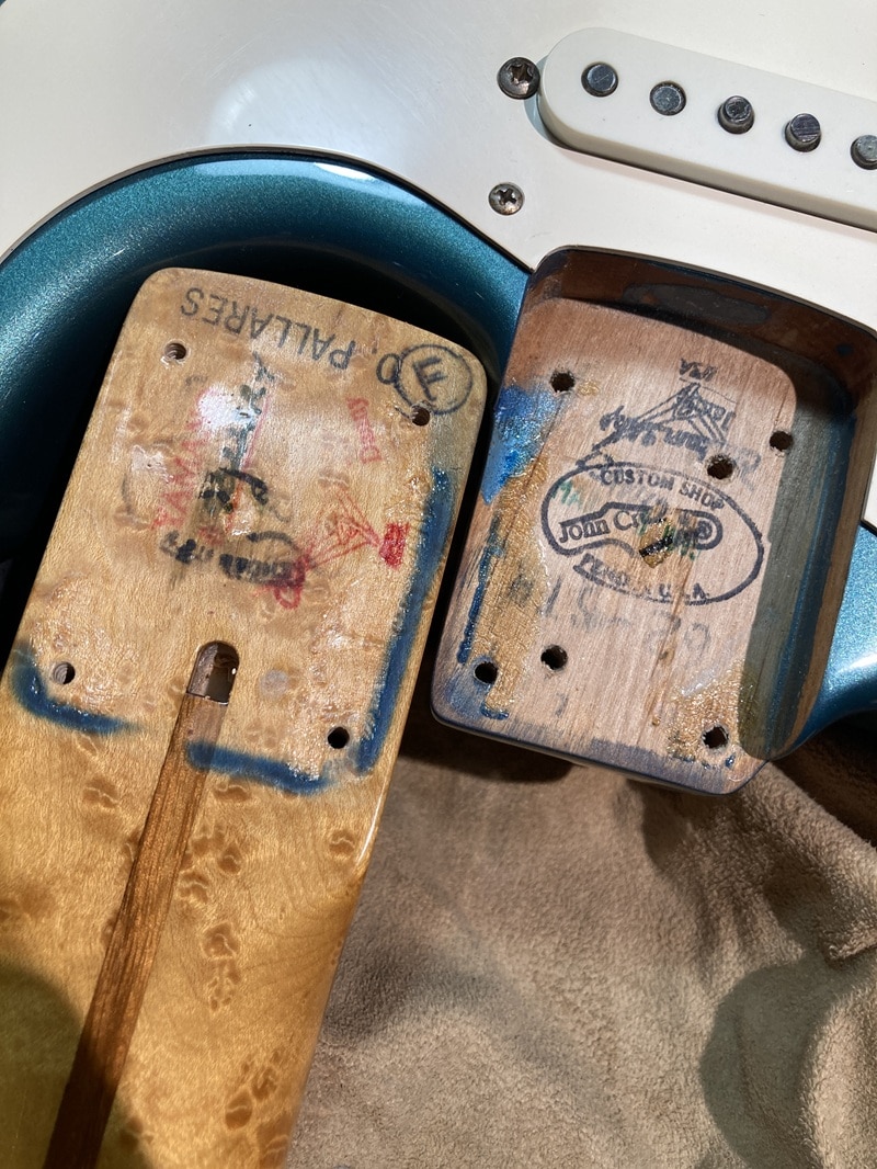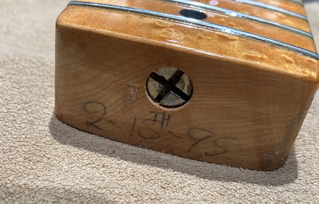 当時にFender輸入代理店の山野楽器によるオーダーモデル。57年仕様をベースとしながら、ネックには見事な杢目を持ったバーズアイ・メイプルが使用され、カラーにはシャーウッドグリーン・メタリックを採用したスペックとなっております。ネックポケットにはJohn Cruzのスタンプもみられます。