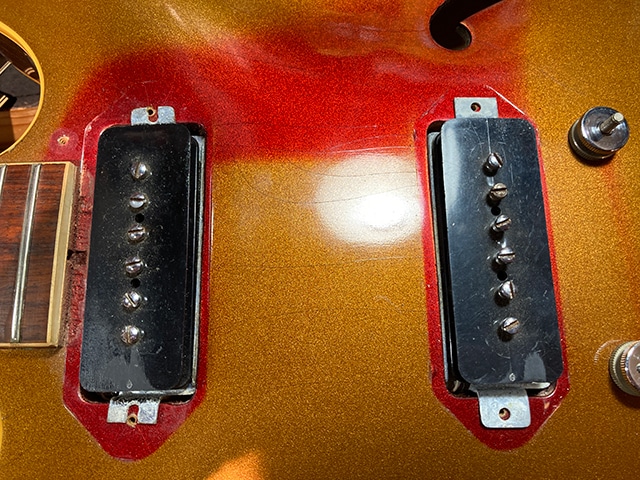 完全ホロウ構造にP-90の組み合わせは50sギブソンのフルアコES-125やES-175などでおなじみで実に素直なトーン。抜群の生鳴りから生まれるサウンドは、ホロウ構造ながら非常に素早く立ち上がり、タッチに対してのレスポンスも申し分ありません。程よい空気感をまといながらも、芯の太い音像と存在感のあるグッドサウンドをご堪能頂けます。当機はセンターはフェイズアウトとなっております。