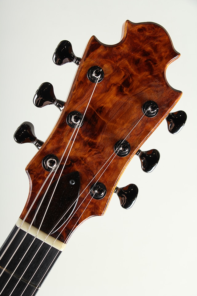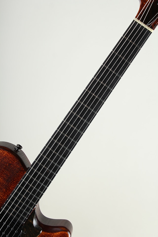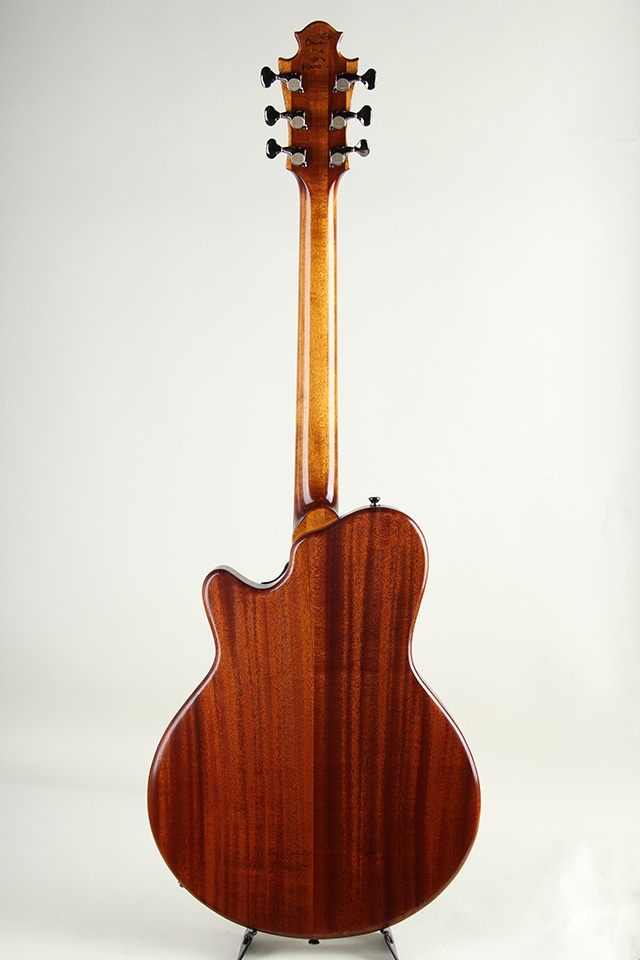 ボディトップにはシトカ・スプルース、バックにはアフリカン・マホガニー、さらにハードメイプル・ネックとエボニー指板を組み合わせた、厳選されたウッドスペック。設計思想から各部パーツのデザインに至るまで、細部にわたりこだわり抜かれた独創的な佇まいも大きな魅力となっています。