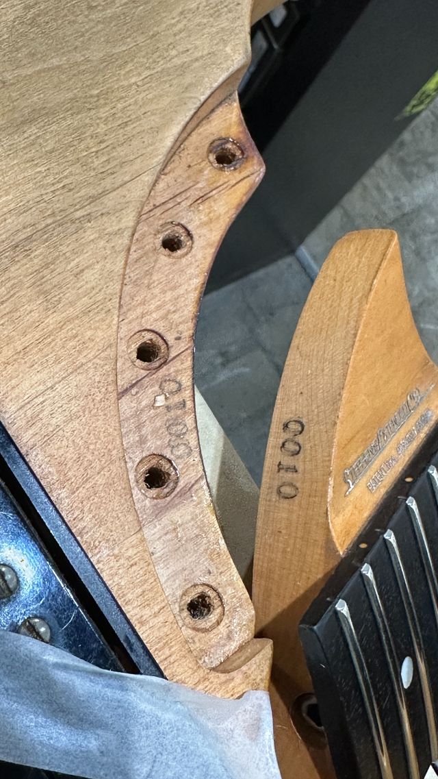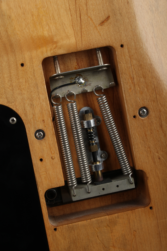 リアピックアップがエスカッションマウントからボディバックのダイレクトマウントへとモディファイされており、USA製と同様の仕様へと変更。アーミングアジャスターが後付けされておりバックパネルは欠品となっております。