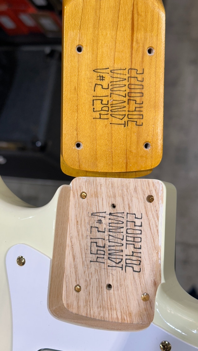 つば出しの22フレット仕様にヴィンテージよりもフラットなアールの210Rの指板ラジアスなど、ヴィンテージスペックに現代的な演奏性を追及したモダンスペックを融合したスタイル、下地からニトロセルロースラッカーで仕上げられた極薄塗装など、一目見ただけでVanzandtだとわかるようなこだわりのスペックとなっております。