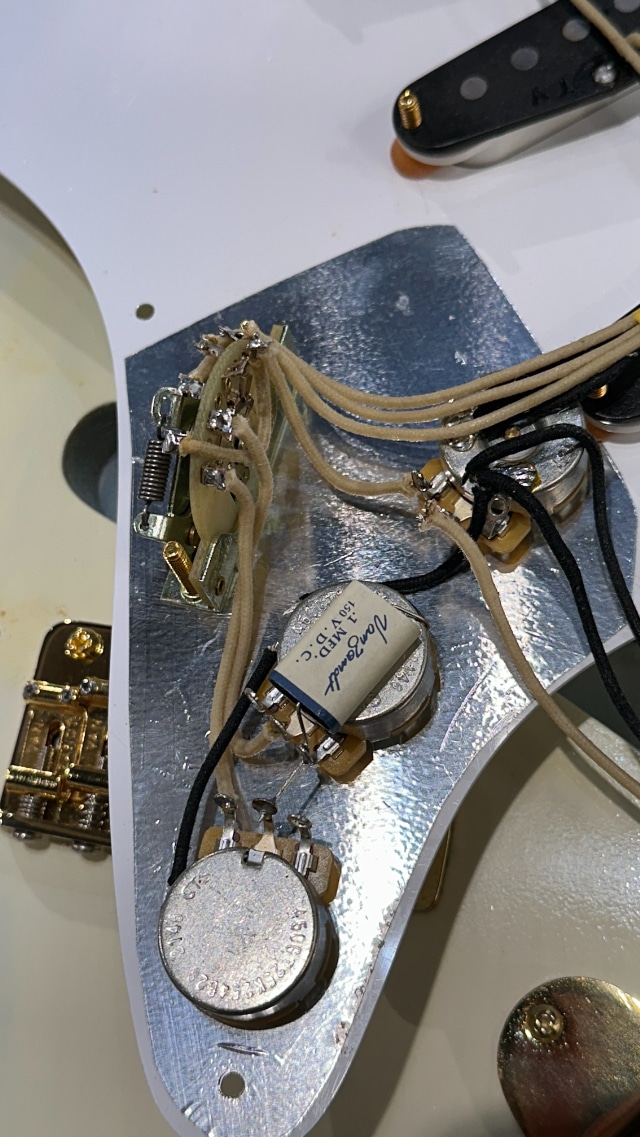 コントロールはリアピックアップのみトーンが効かないヴィンテージ仕様、セレクターは5-Wayが搭載されておりハーフトーンのアウトプットが可能となっております。
