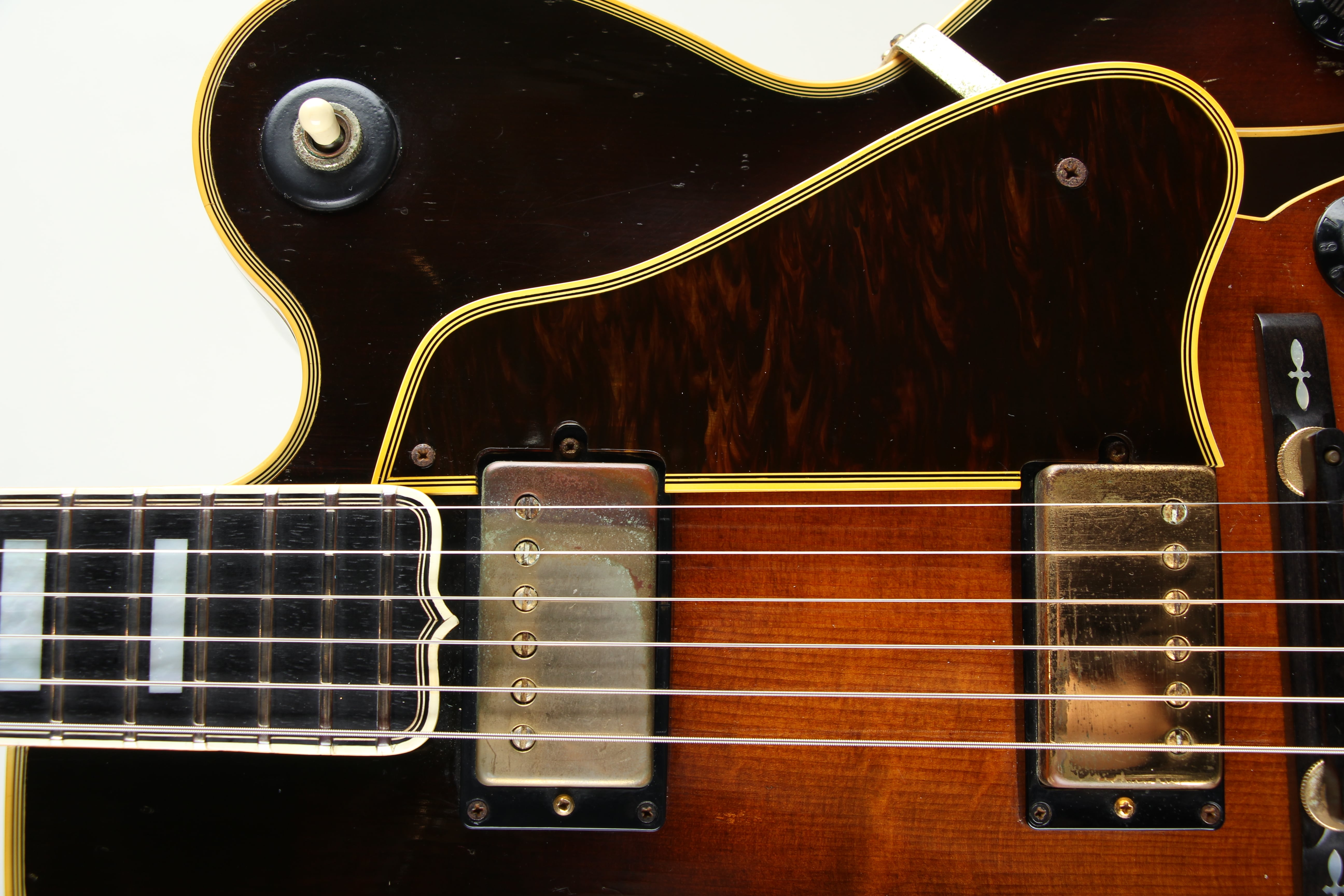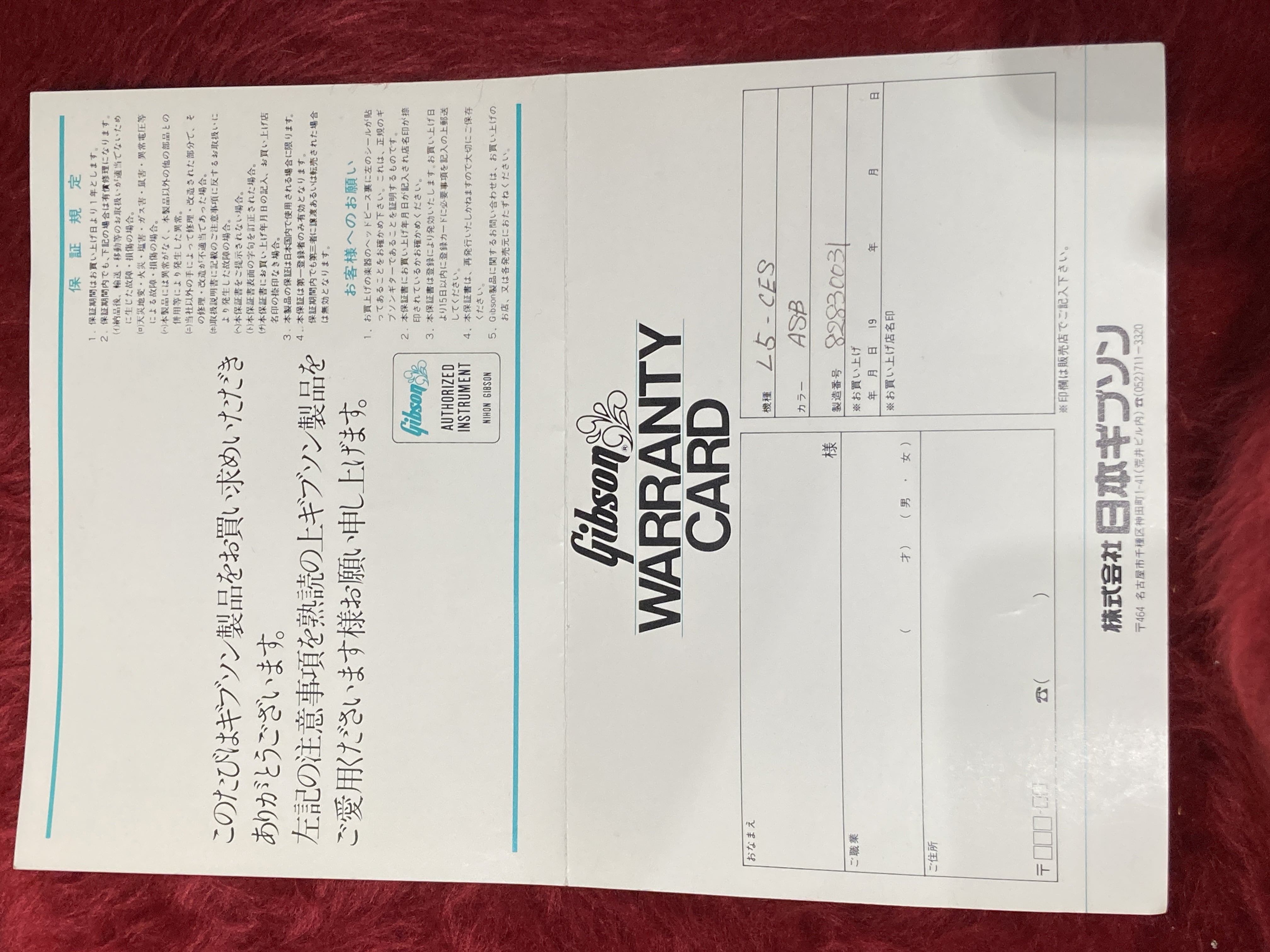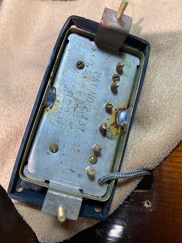 経年からある程度のキズや塗装チェッキング、フロントPUカバーにサビ等は見られますが、年式からして良好な状態です。ピックガードが交換。ネックコンディションも良好でトラスロッドの余裕もあり、フレット残7割と演奏面も良好です。当時の保証書、オリジナルハードケースが付属いたします。