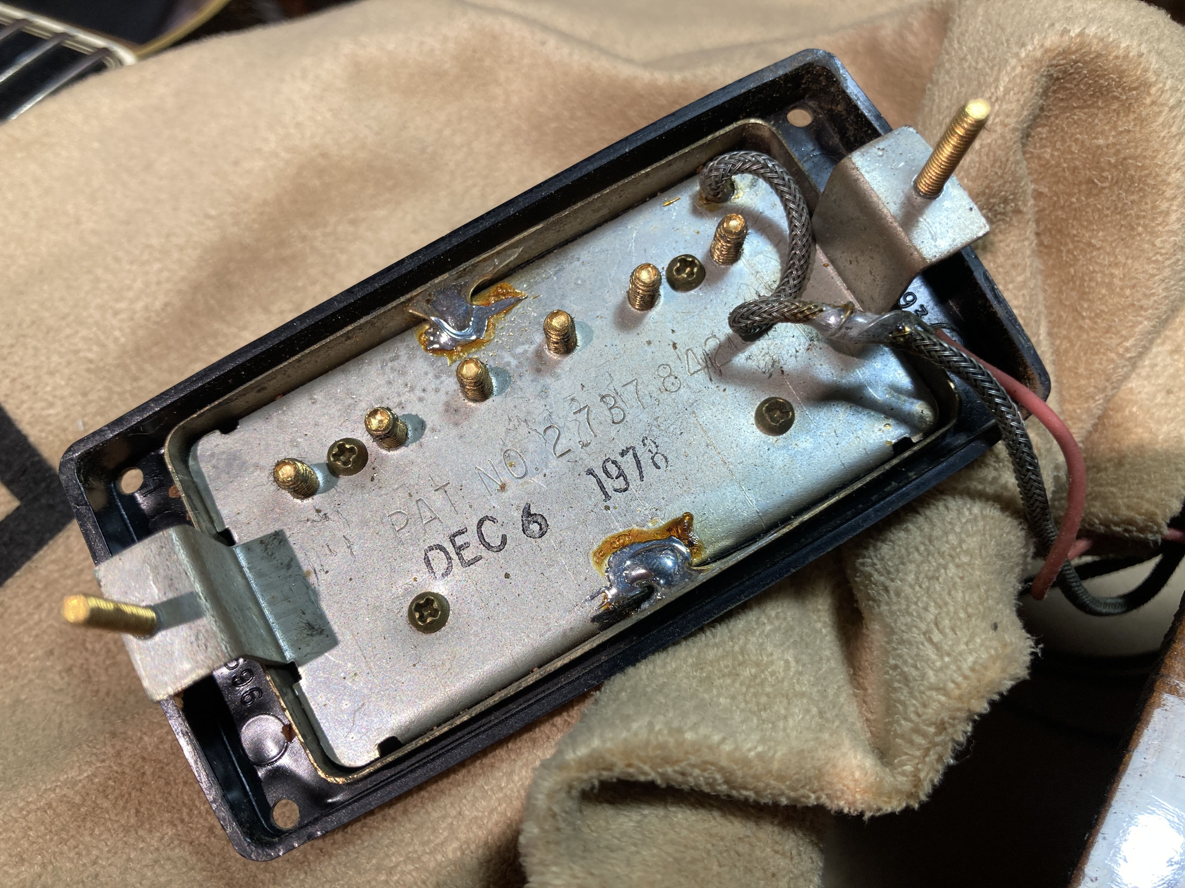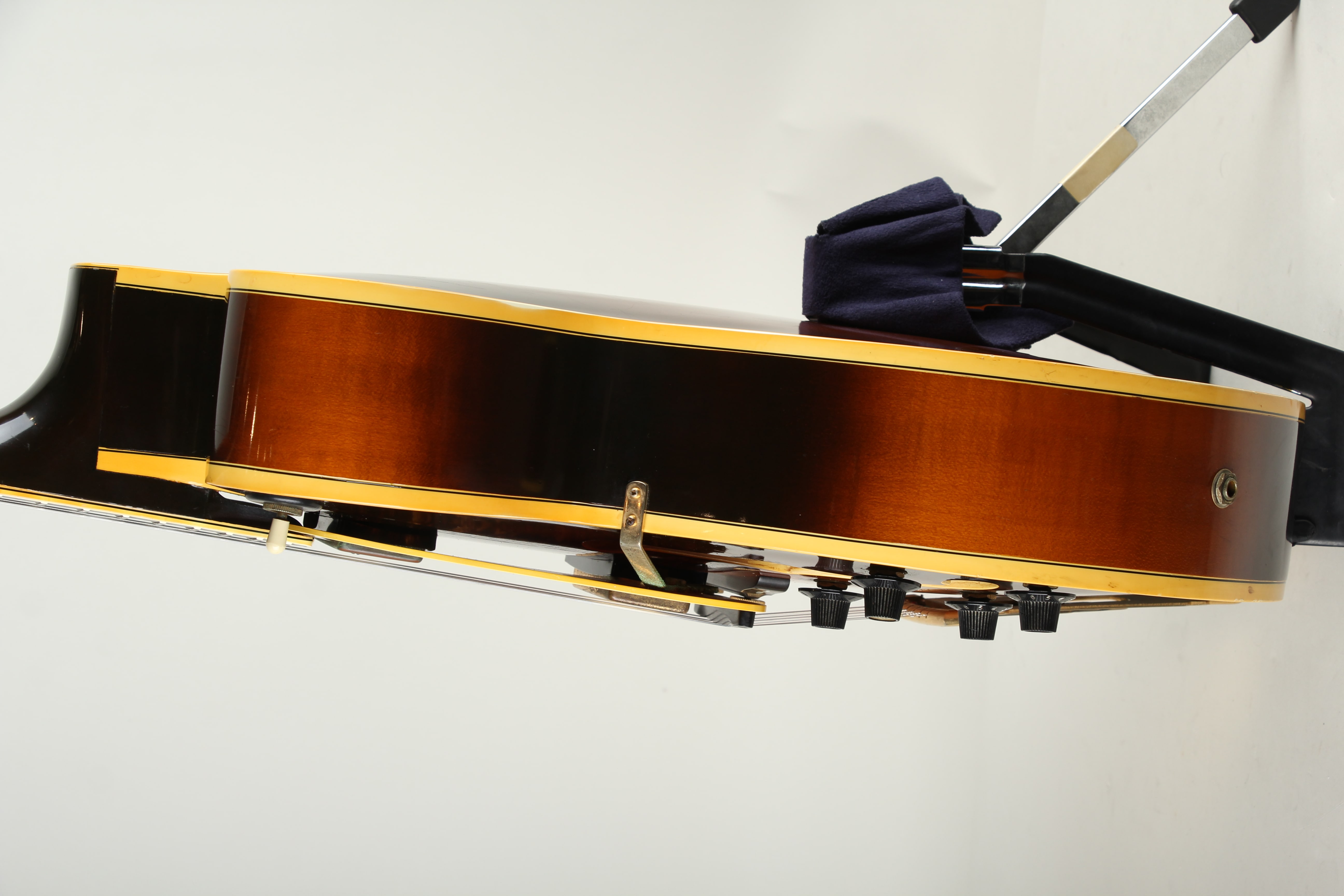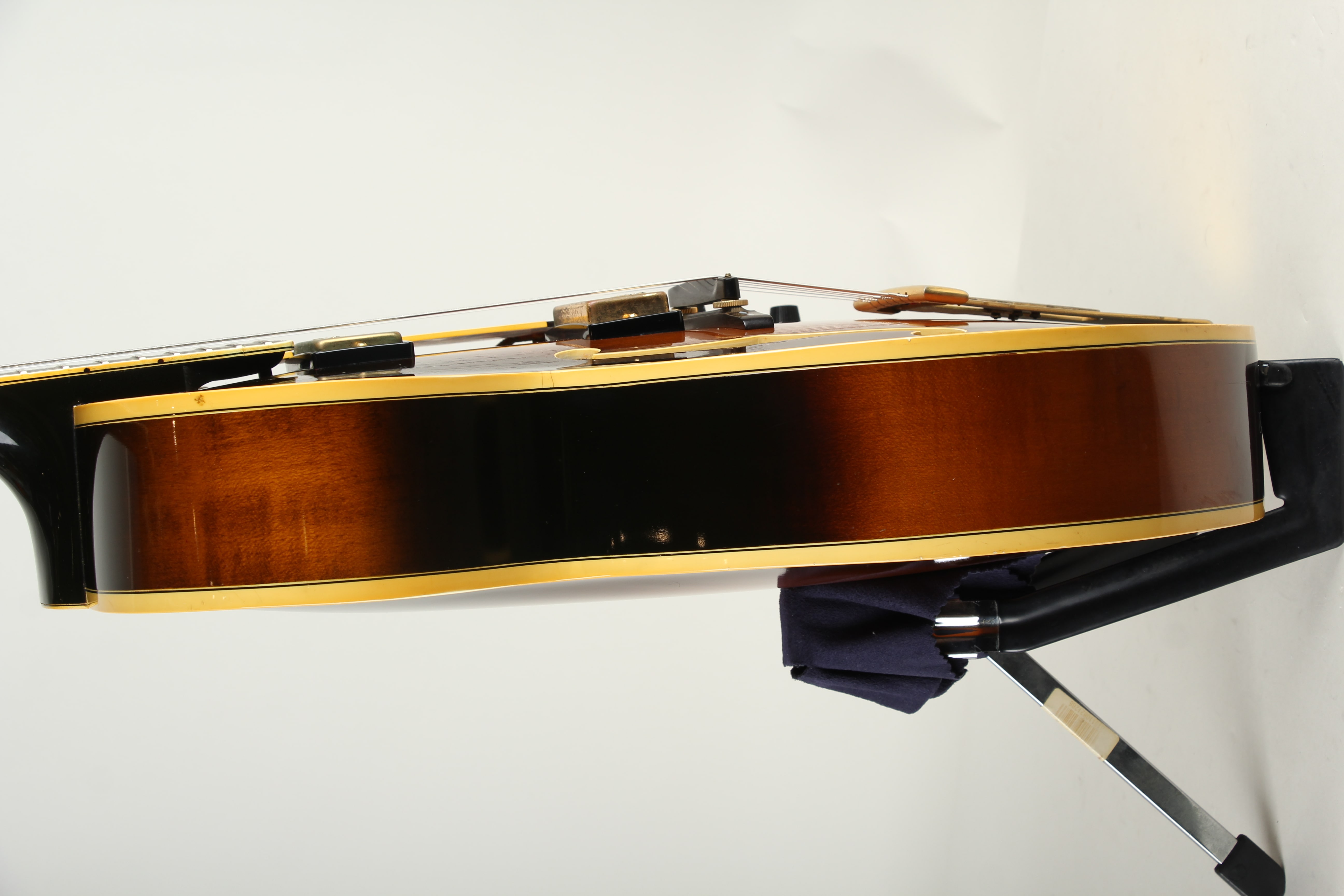 経年からある程度のキズや塗装チェッキング、フロントPUカバーにサビ等は見られますが、年式からして良好な状態です。ピックガードが交換。ネックコンディションも良好でトラスロッドの余裕もあり、フレット残7割と演奏面も良好です。当時の保証書、オリジナルハードケースが付属いたします。