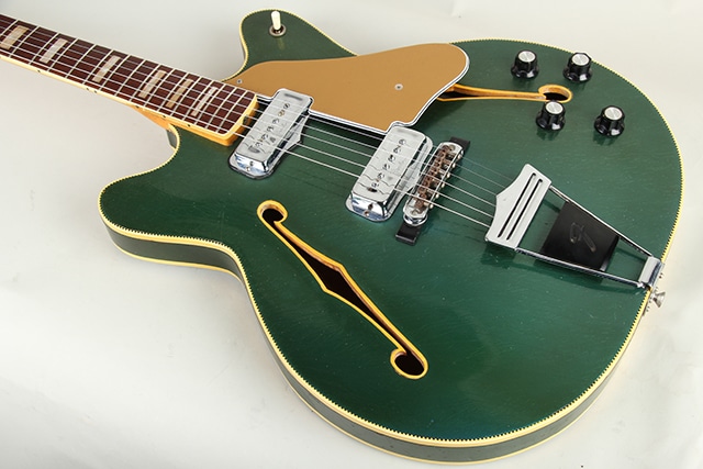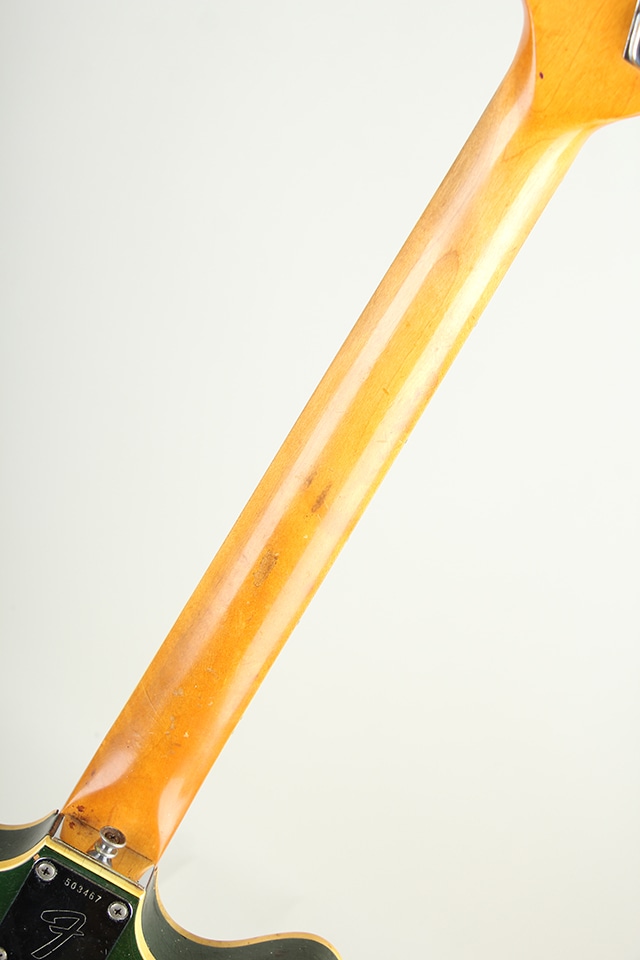 本機はデュアルピックアップ仕様の Coronado II で、レアカラー “レイク・プラシッドブルー” の一本。ネックデイトは1967年、シリアルは1972年となっています。