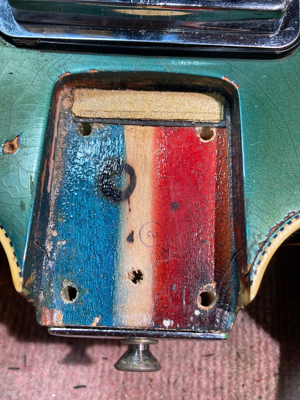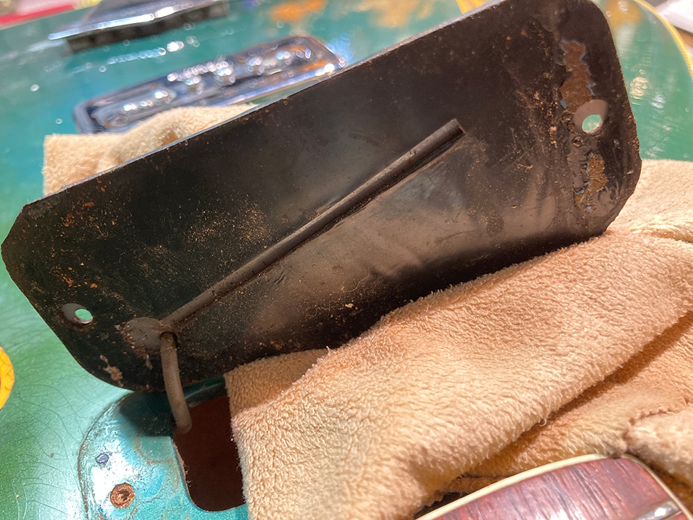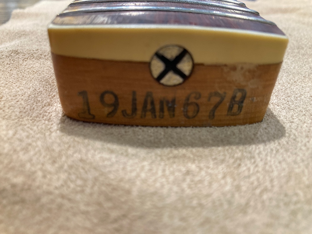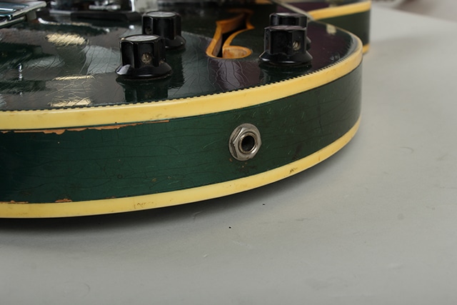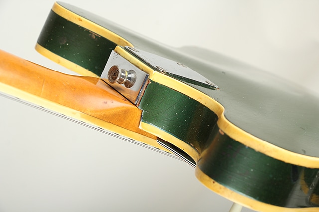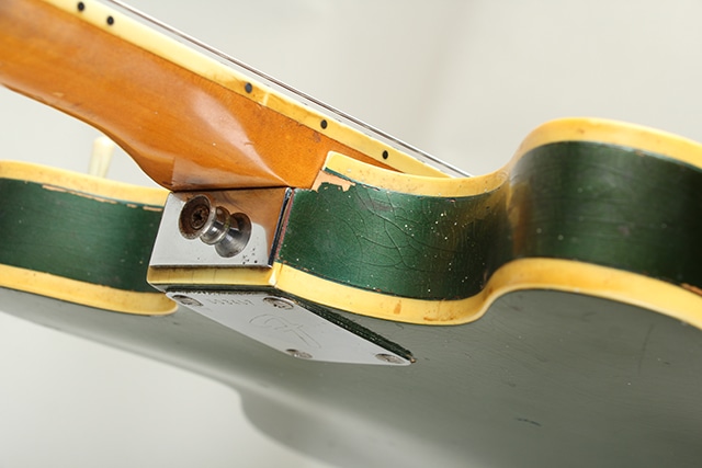 経年からキズや塗装チェッキングや塗装チップ等は見られますが、ビンテージらしい雰囲気の良い佇まいです。フロントピックアップのポールピースが1つ交換、リアピックアップ下のスペーサーが欠品。それ以外はパーツのオリジナル度も高く、ネックコンディションも概ね良好でトラスロッド余裕もあり、フレット残りもまだあり演奏面も良好です。ハードケースが付属します。