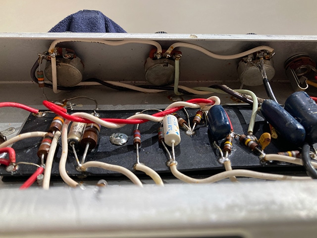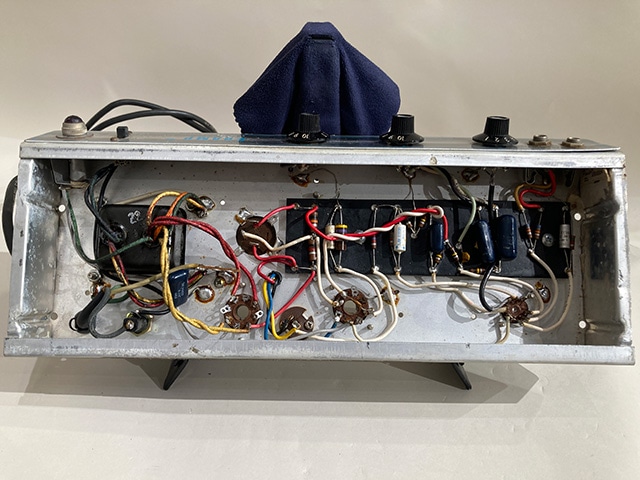 シルバーフェイスの愛称で知られる当個体はその名の通り操作部にアルミシルバーに明るい青色のラインが施されたルックスになっており、サウンド傾向としても明るいクリーントーンからヴォリュームを上げていくとパリッとしたオールチューブならではのナチュラルなドライブサウンドを出力します。