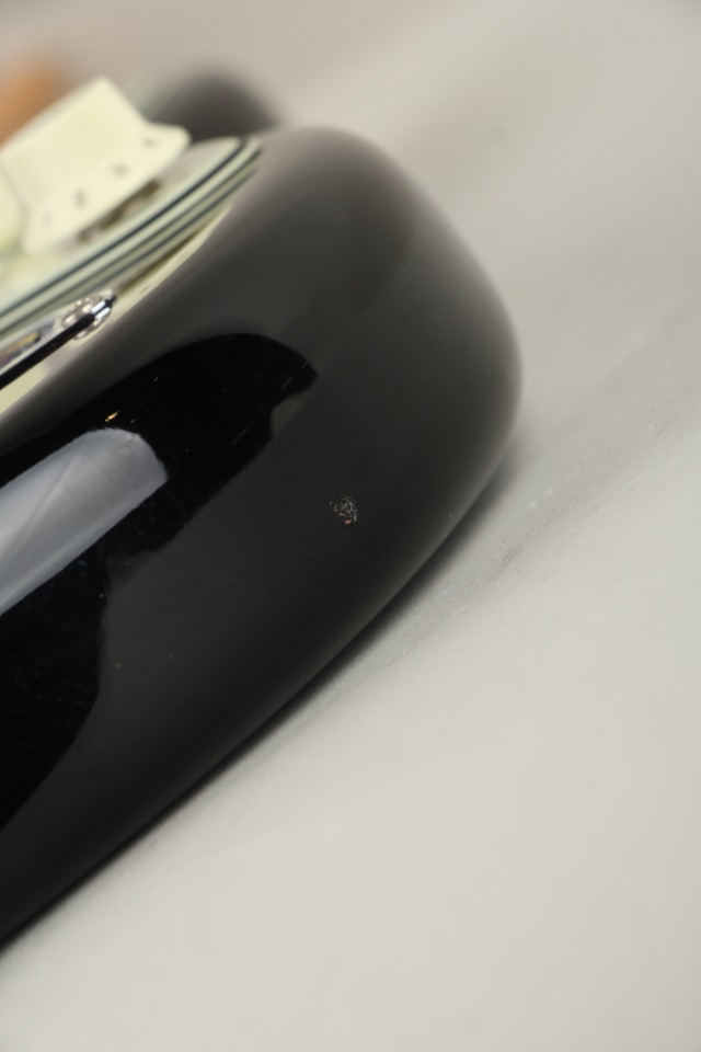 主にボディにキズや打痕、塗装チップなどがいくつか見られますが、外観を大きく損なうようなダメージはございません。現状のプレイアビリティに関して、ネック状態は問題無し、トラスロッドは効き良好左右に余裕あり、フレットには気になる部分減りは無く8割以上残っており、外観と演奏面ともにコンディション良好です。