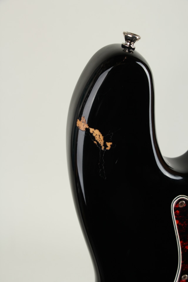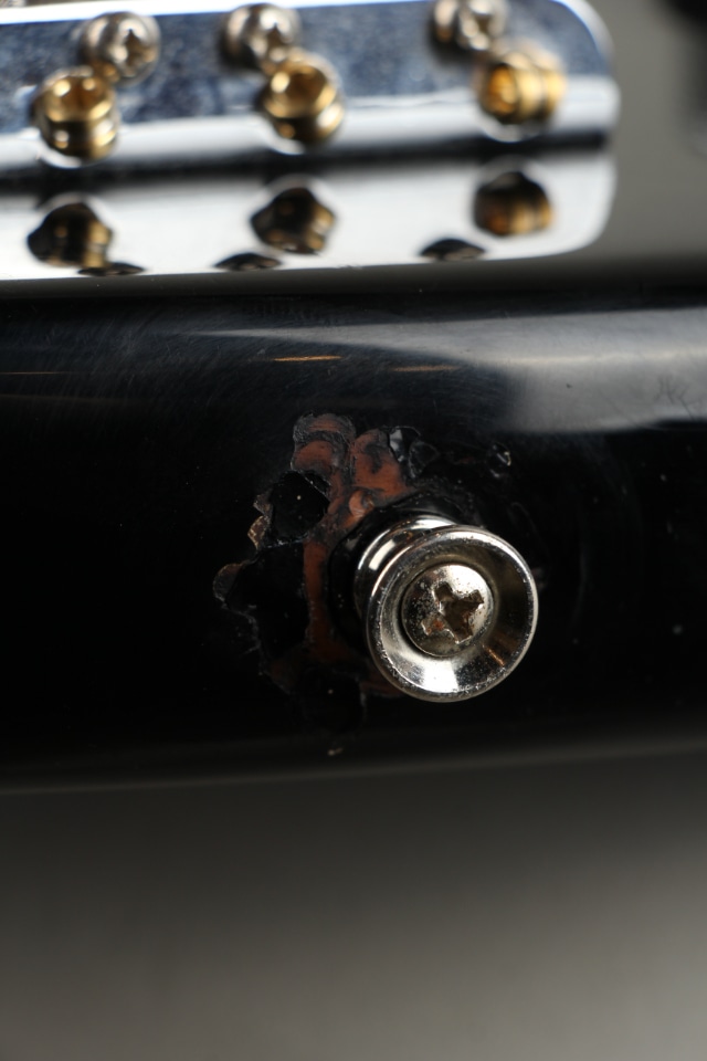 状態といたしましては、ペグに曲がりが生じており全体的なキズや打痕、塗装剥がれ、フレットすり合わせの形跡が見られ、しっかりと引き込まれながらも演奏面での手直しがなされてきたことが伺えるプレイヤーズコンディションでございます。