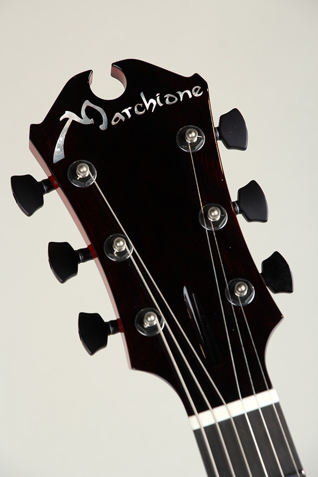 ミディアムスケールのテンション感から、マルキオーネらしい音像のクリアさやスピード感を持ちながらもメローな側面が加わったサウンド。セミホロー構造とは思えない程のエアー感と芳醇な倍音感を持ったサウンドはフルアコースティックの質感も感じさせてくれるような上質の響きを聞かせてくれます。エレクトリックでありながらも楽器の"鳴り"を尊重したアコースティックさを持ち、繊細でありながらも力強い、それらの圧倒的な存在感はエレクトリックギターの新たな境地と言っても過言ではありません。