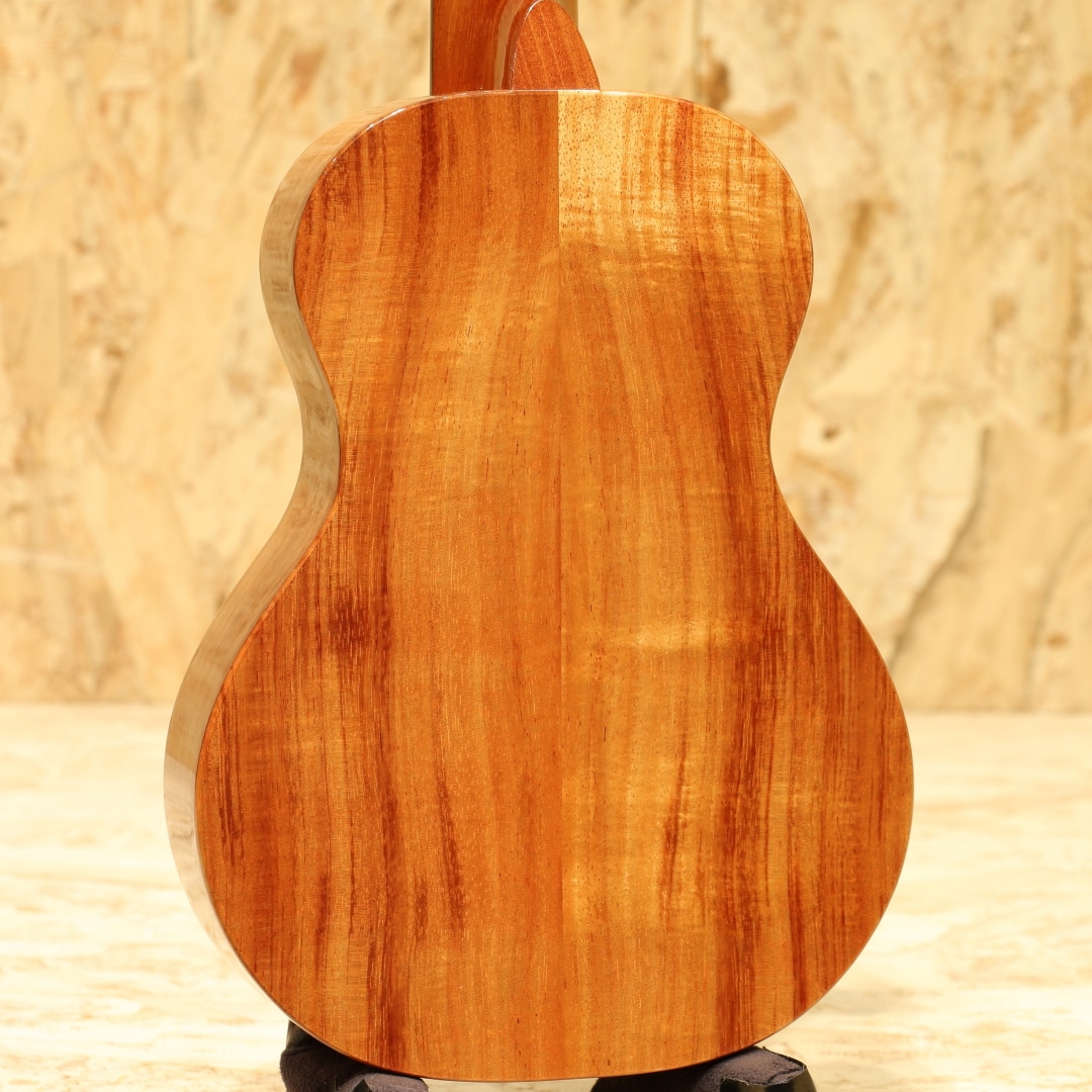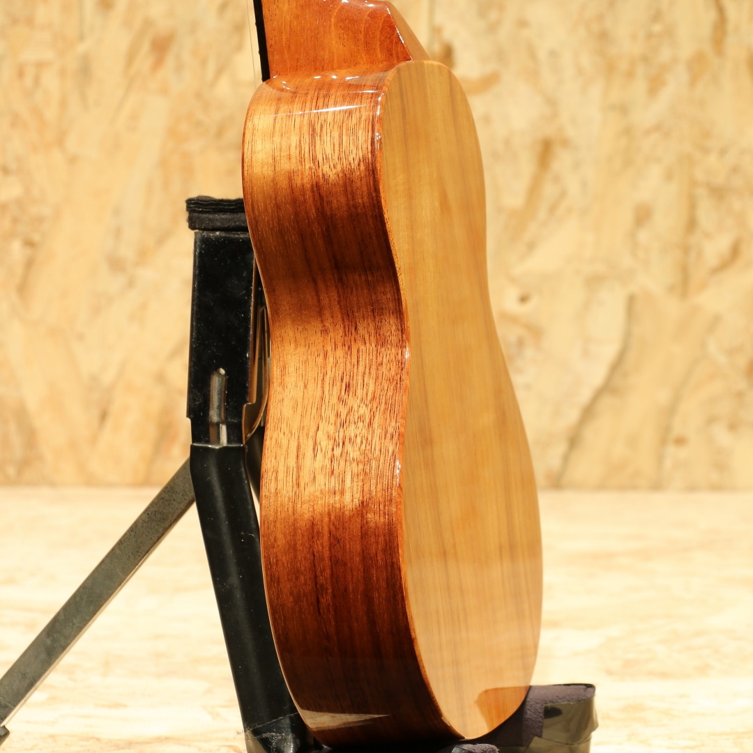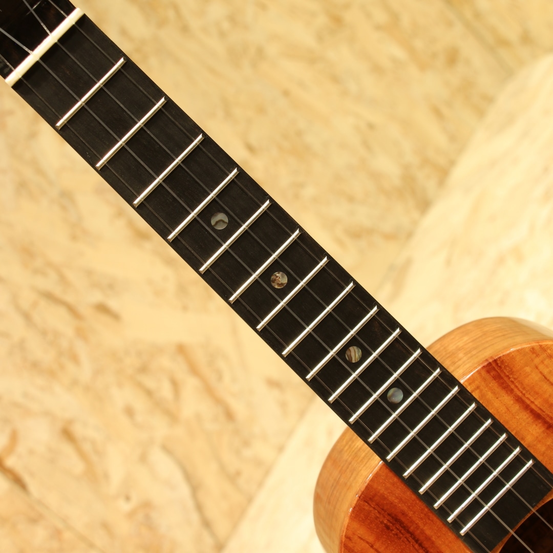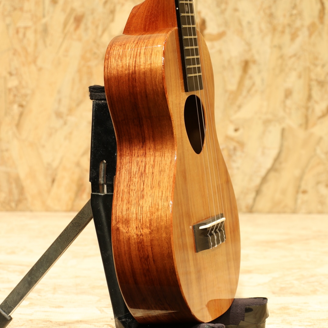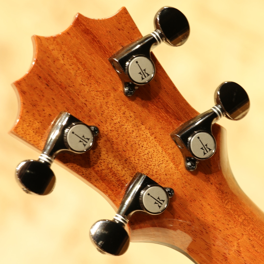 アルヴィン・オカミにより1995年に創設されたコアロハ・ウクレレ。現在は長男のアランと、次男のポールを中心に少数精鋭の職人たちで運営されております。今ではハワイを代表するウクレレメーカーの一つとなったコアロハ。モダンなルックスデザイン、優れた演奏性で、他のメーカーにはないハイファイでクリア、そしてなんと言っても大きな音量が特徴。本器はコンサートサイズのスタンダードモデル”KCM-00”。ハワイアンコアボディ、エボニー指板&ブリッジ、ロゴ入りロトマチッククロームペグ、アバロンドット指板インレイ、木製ラベルプレート。ロトマチッククロームペグやエボニーのヘッド突板にアバロンブランドロゴインレイなど高級感のあるルックスへとブラッシュアップされたスペックとなっています。コンサートサイズで演奏の幅も広く、13フレットジョイントでソロ弾きでも難なく対応可能です。ペグ変更により以前に比べ弾けるハイファイさもありながら、芯のはっきりした深みのあるサウンドとなっています。グロス仕上げで杢目の良さが際立ち、音色も艶やかでまとまりがあります。ハワイ製の大定番ウクレレ。軽量で耐久性にも優れたセミライトケースが付属します。