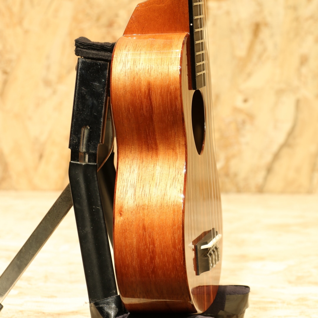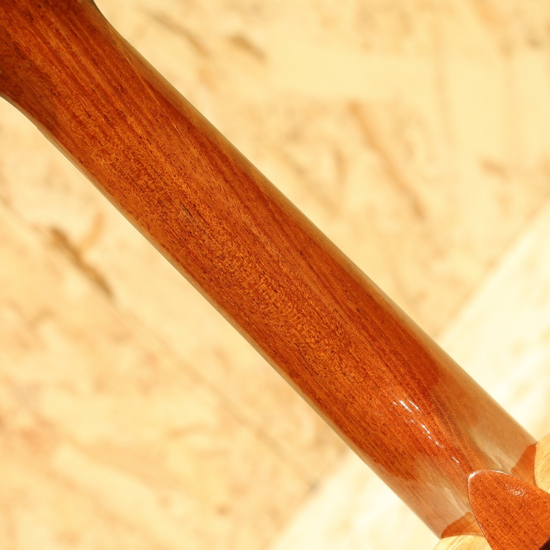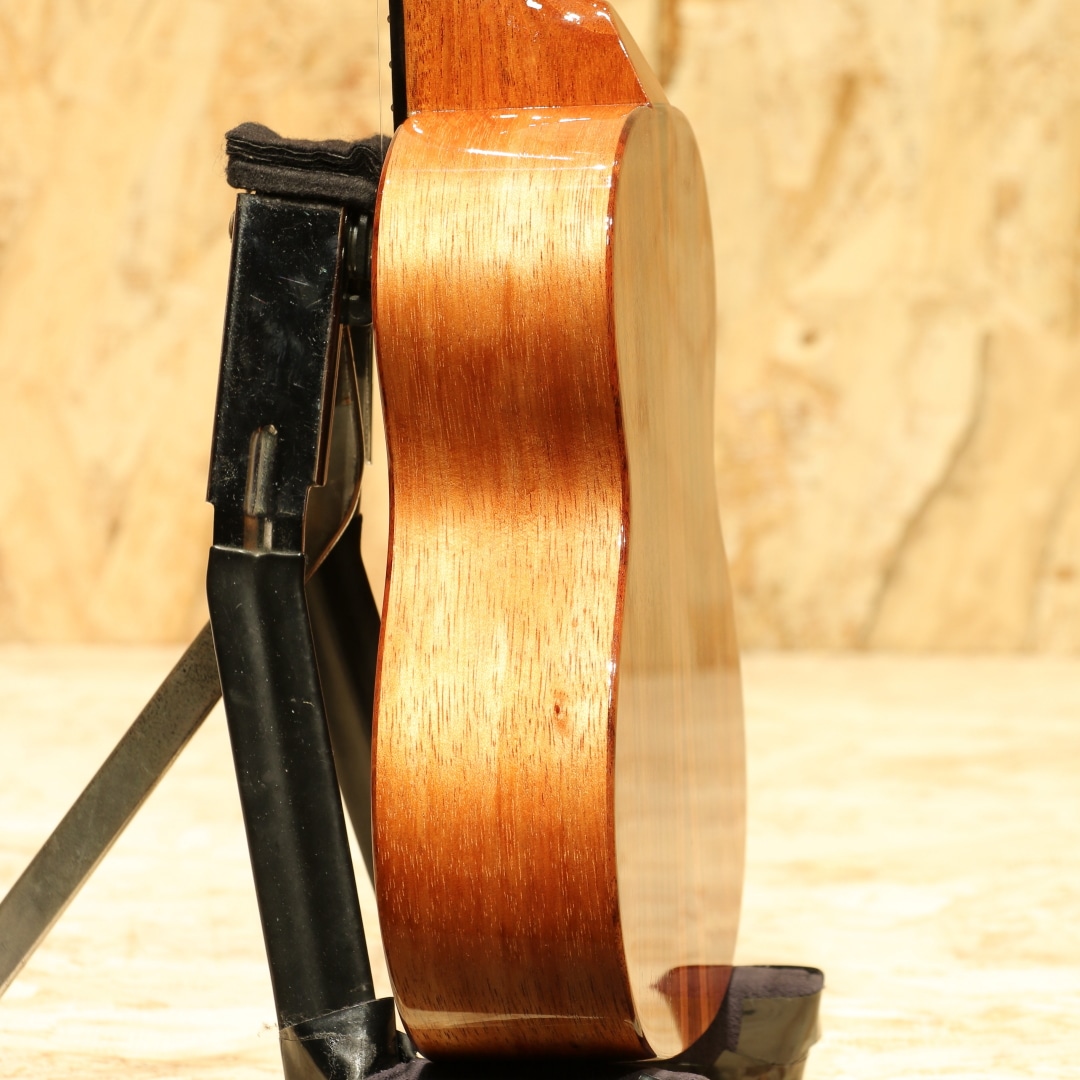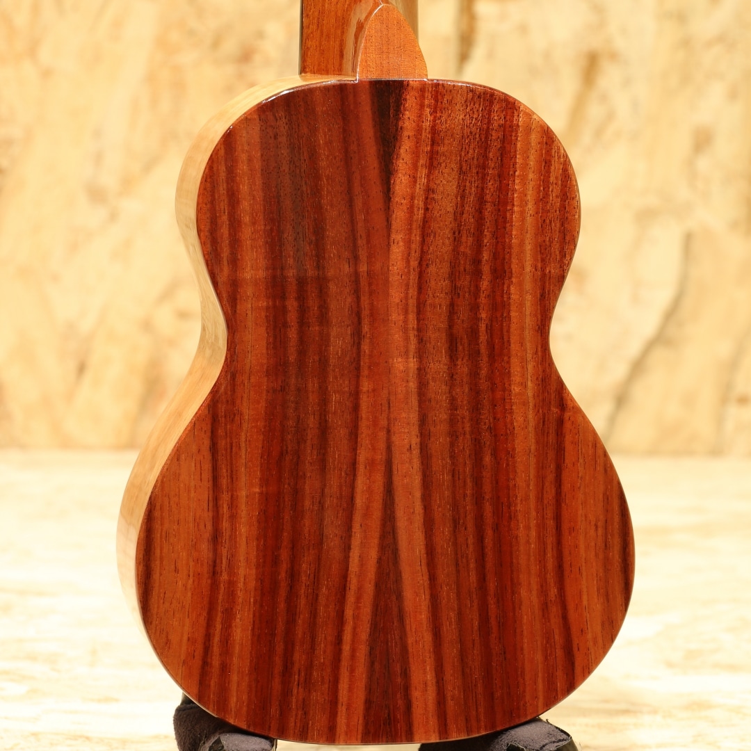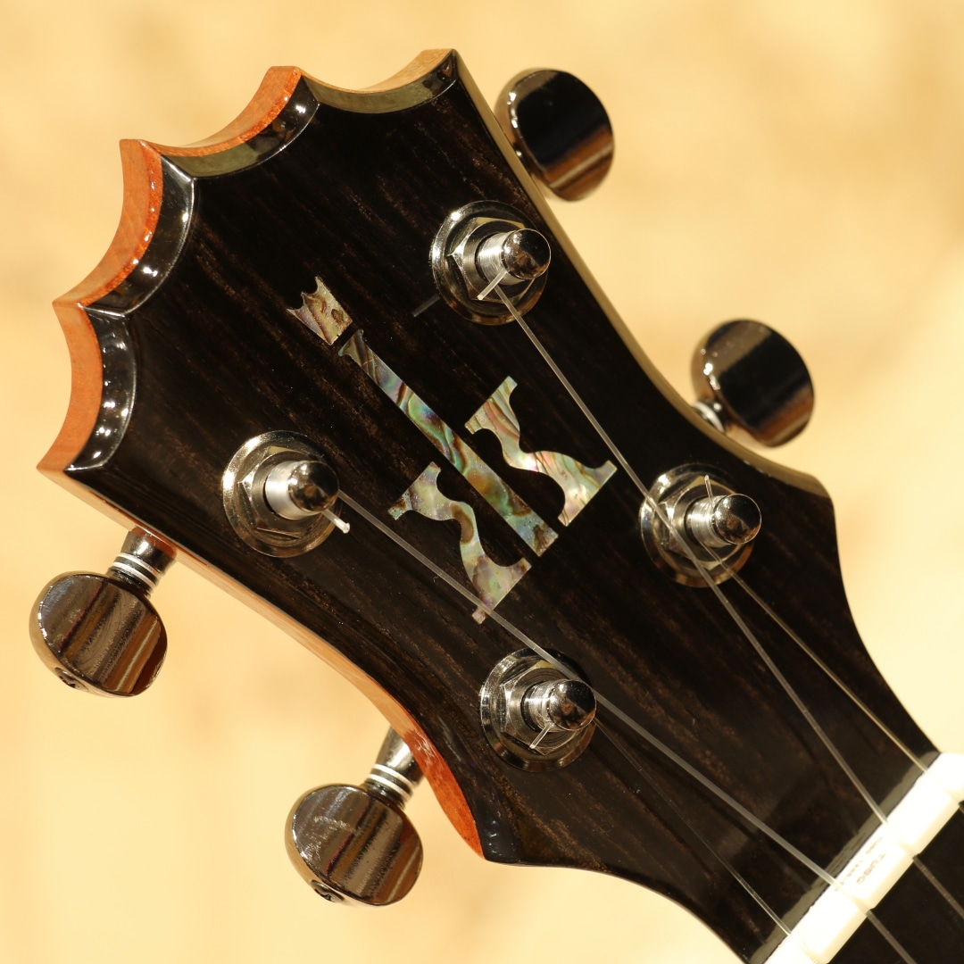 アルヴィン・オカミにより1995年に創設されたコアロハ・ウクレレ。現在は長男のアランと、次男のポールを中心に少数精鋭の職人たちで運営されております。今ではハワイを代表するウクレレメーカーの一つとなったコアロハ。モダンなルックスデザイン、優れた演奏性で、他のメーカーにはないハイファイでクリア、そしてなんと言っても大きな音量が特徴。本器はソプラノサイズのスタンダードモデル”KSM-00”。ハワイアンコアボディ、エボニー指板&ブリッジ、ロゴ入りロトマチッククロームペグ、アバロンドット指板インレイ、木製ラベルプレート。ロトマチッククロームペグやエボニーのヘッド突板にアバロンブランドロゴインレイなど高級感のあるルックスへとブラッシュアップされたスペックとなっています。定番ソプラノサイズでコロコロと軽快な音色、コアロハらしい弾けたトーンと相性は抜群でコード弾きやジャカソロには最適です。12フレットジョイント16フレットエンドでソプラノながらに演奏性にも優れた仕様となっています。ペグ変更により以前に比べ弾けるハイファイさもありながら、芯のはっきりした深みのあるサウンドも魅力の1つとなっています。グロス仕上げで杢目の良さが際立ち、音色も艶やかでまとまりがあります。ハワイ製の大定番ウクレレ。軽量で耐久性にも優れたセミライトケースが付属します。