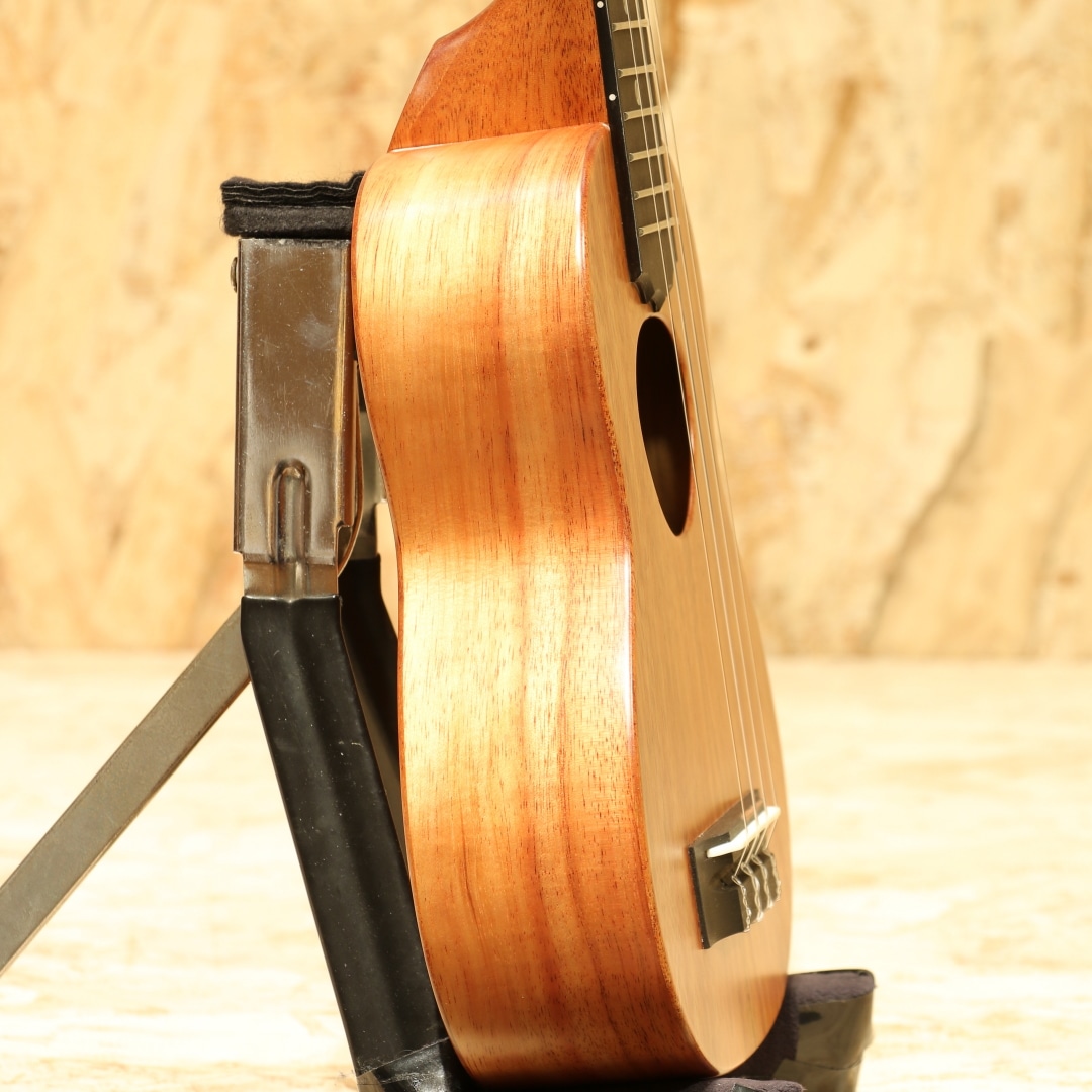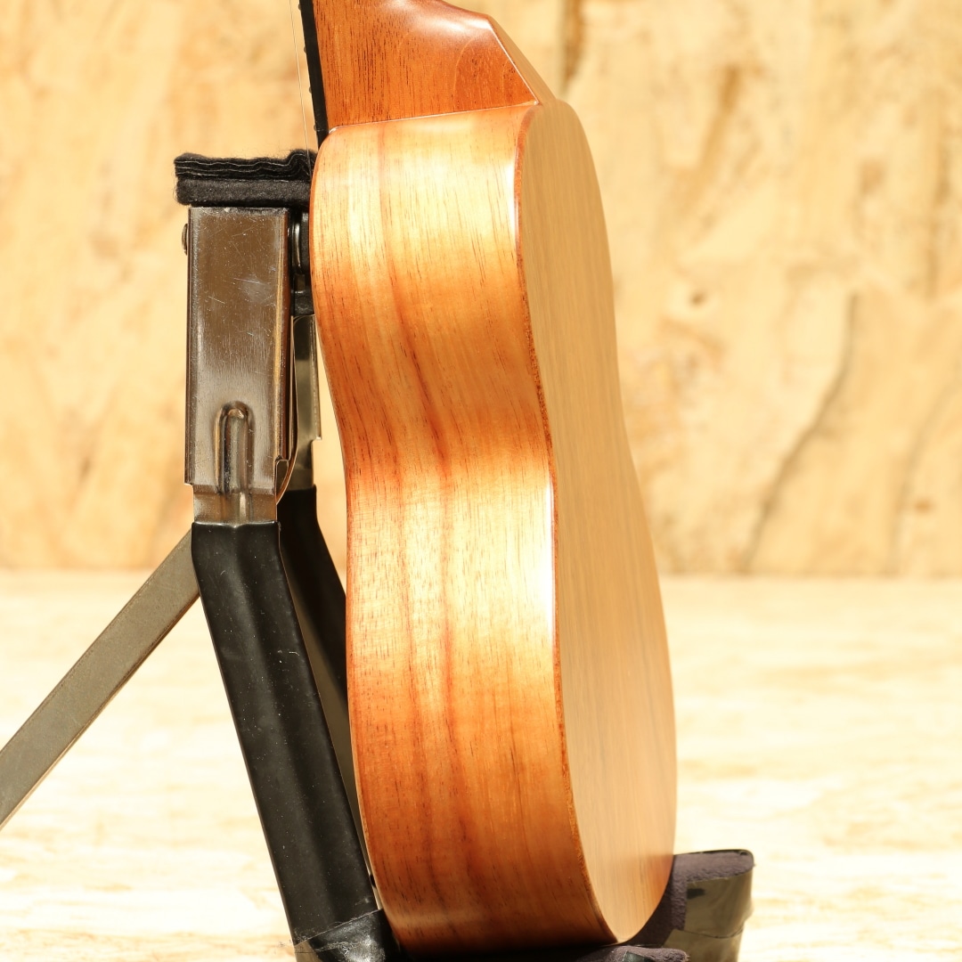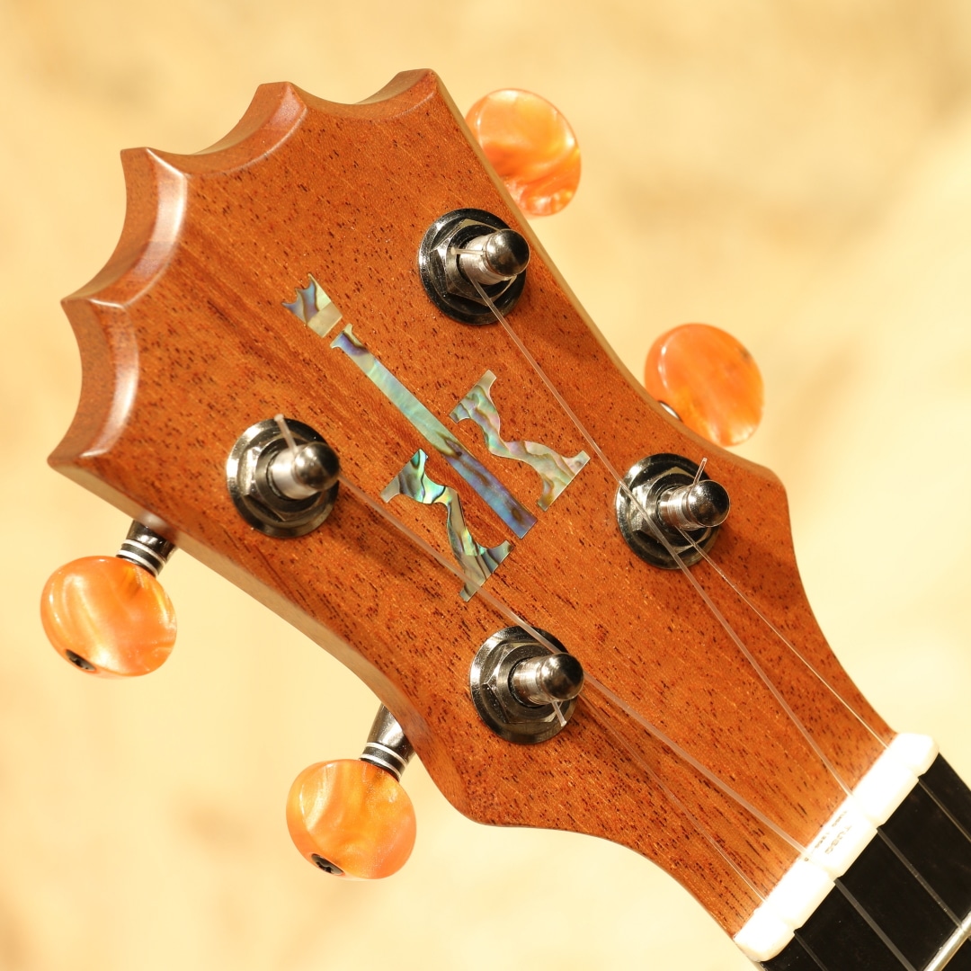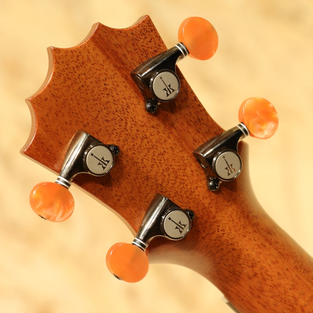 アルヴィン・オカミにより1995年に創設されたコアロハ・ウクレレ。現在は長男のアランと、次男のポールを中心に少数精鋭の職人で運営されております。今ではハワイを代表するウクレレメーカーの一つとなったコアロハ。三角のサウンドホールやクラウンデザインのヘッド等、モダンなルックスと、明瞭なトーンで響かせる大音量が特徴。本器は滑らかな手触りの艶消し塗装にて仕上げられたソプラノモデル"KSM-10"。ハワイアンコアボディ、マホガニーネック、エボニー指板&ブリッジ、独自の内部構造の「ユニブレース」。従来のソプラノモデルは演奏範囲が12フレットまでしかなかったのですが、現在のモデルは15フレットまで演奏範囲を拡大。またフリクションペグからギヤペグへと変更され、機能性、演奏性が格段にグレードアップしております。フレットのバリが出ないように設計された指板サイドや指板エンドにも施されたクラウンデザインなど、細かな部分にもこだわりが見られます。弾けるような軽やかで明るいコアロハサウンド、サテン仕上げによりウッディで温かみの増した音色です。ボディ内のラベルもウッドラベルへ変更されており、木の味わいを活かしながら高級感を感じさせてくれます。持ち運びに便利で耐久性にも優れたライトケースが付属します。