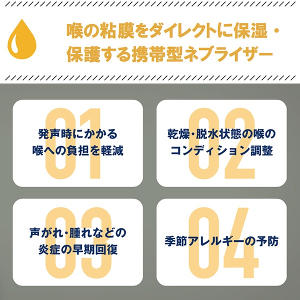 管楽器奏者にもオススメな喉の保湿ケアを目的とした携帯型、本格ボイスケア・ツール。
