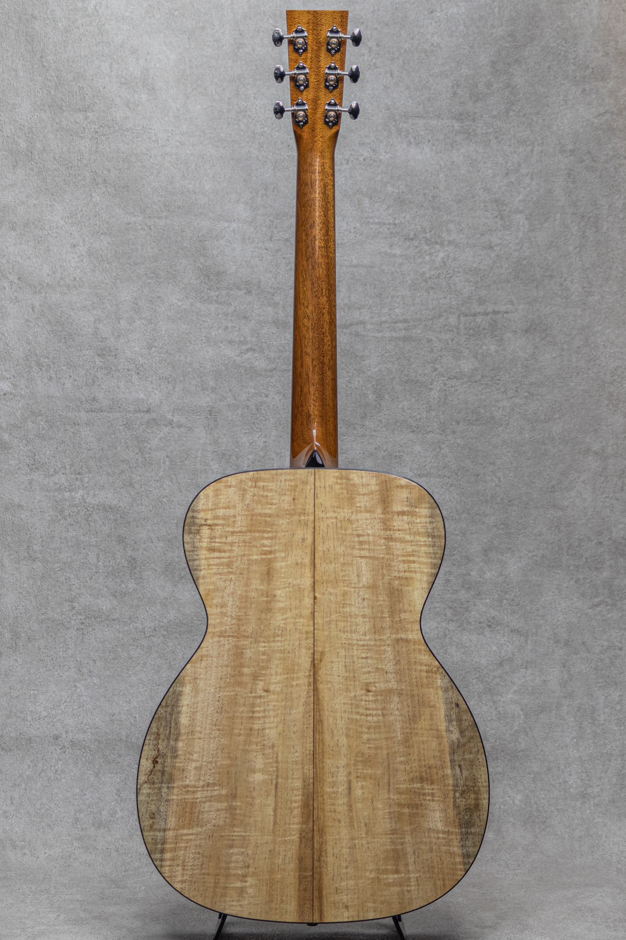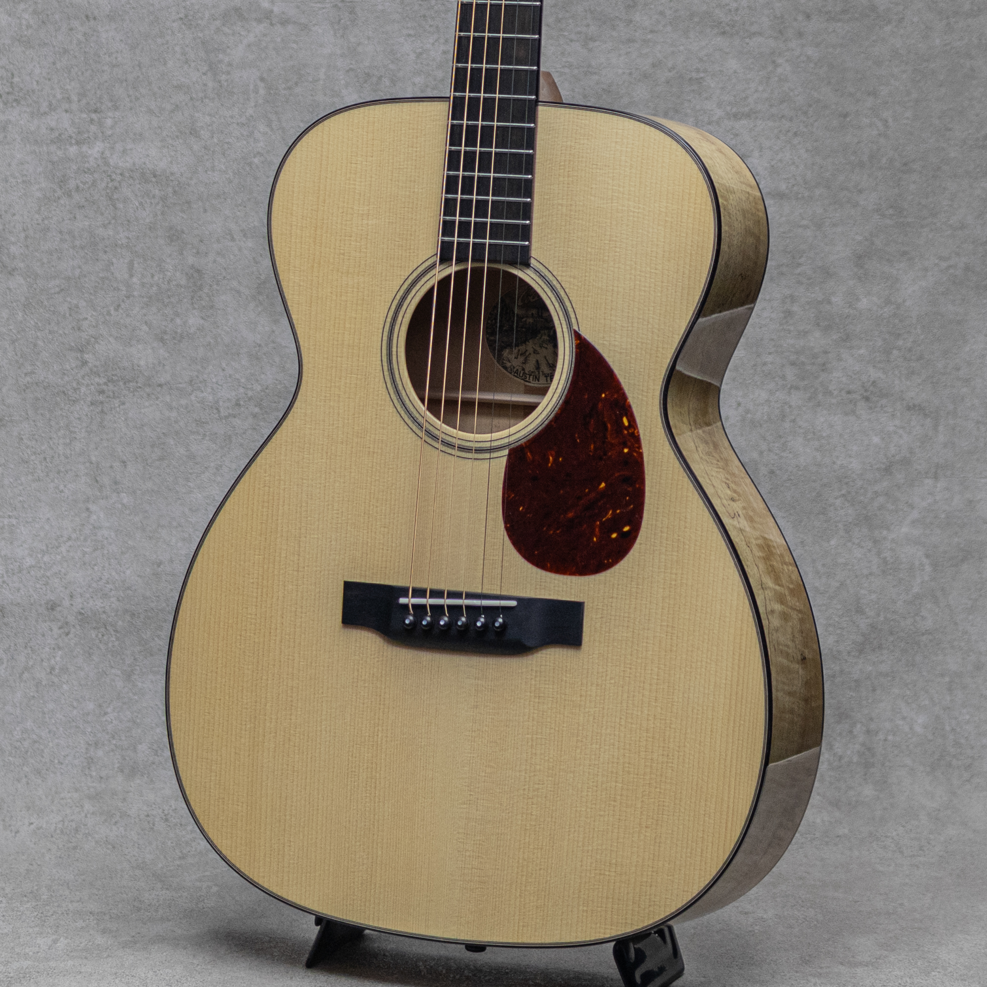 世界的にもっとも高い評価を得ているブランドの一つであるコリングスギター。コリングスの高く保たれたその完成度は、プレイヤーがその楽器を手に持つだけで見惚れてしまう美しさを持ち、音を出せば納得する響きを放ちます。本器はOMモデル"OM1A"のエキゾチックウッドカスタムモデル。トップに美しい極上アディロンダックを採用し、S&Bには縮杢の浮き出るピーカンを採用したポテンシャルの高いカスタムモデル。全面に柾目痕がゆらめく極上のアディロンダックスプルーストップ、揺らめくフレイム杢が浮き出るピーカンサイド&バック、ホンジュラスマホガニーネック、エボニー指板&ブリッジ、MOPドット指板インレイ、ウェバリーオープンバックペグ、べっ甲柄セルロイドピックガード、べっ甲柄セルロイドバインディング、戦前マーチンスタイルをもとにしたオリジナルスキャロップドXブレイシング。”Pecan(ピーカン/ペカン)”は米国中南部原産のクルミ科の木材。またスタンダードベースと侮るなかれ、ここ数年のコリングスのスタンダードシリーズはとても完成度が高く、ある種の完成の域を感じさせる出来栄え。一時期に謳われた"カタイ"サウンドはもう過去の遺物で、完成度の高い楽器に仕上がっています。アディロンならではの粘りある太い立ち上がりと、ピーカンの柔らかくしっかりと反響するふくよかな倍音。ウォルナットのような柔らかで奥深い反響感をもっと爽やかにした様な印象の本器。しっかりと反応しながら野太く優しく爽やかに響かせてくれます。ローズ系のダークな太さとは異なりしっかりと輪郭を帯びながら、それでいて芯から太く伸びやかに反応してくれます。OM1/ホンマホの軽快で明るい響きよりももっと包み込んできれる反響感が強く、さらにはアディロンの太い立ち上がりで重なる倍音もひとしおです。フィンガータッチでも十分に反応しながら、甘く伸びやかな響きを魅せてくれます。小脇に抱え、癒しに包まれるひと時を共有してくれる1本。入力に正確かつ、過敏過ぎないレスポンスは、ギタリストが弾きやすいと感じるサウンドを高い次元で実現しています。レアウッドの面白みと高い完成度のOMをお探しの方は、是非お手元でお確かめください。