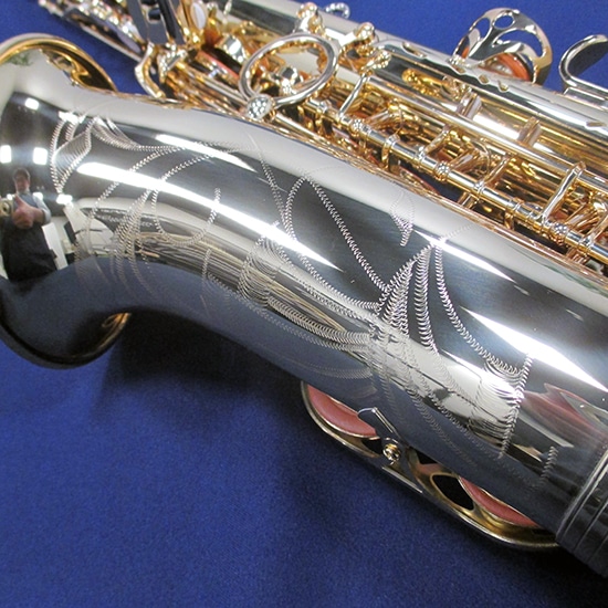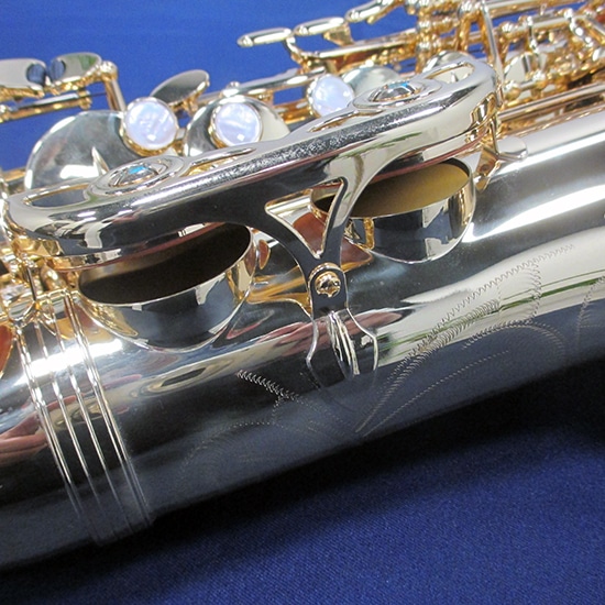 管体:イエローブラス製ラッカー仕上げ/キィ:ブラス製ラッカー仕上げ/硬質製バネ/High F#キィ付/エボナイト製マウスピース付き/彫刻入り