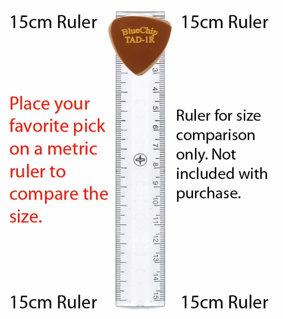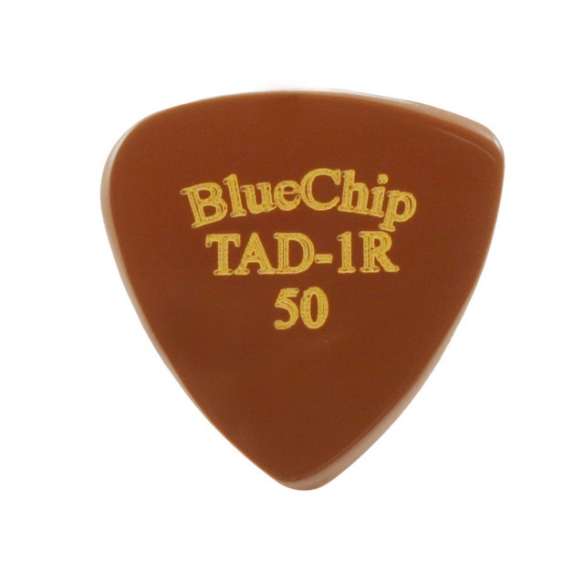 TAD50-1RはTPと同じ様な形をしていますが、少し大きめのトライアングルピック。そして一つの角がラウンドコーナーになっています。弦を当てる角を変える事でエッジの効いた音と甘い音色を使い分ける事のできるユニークなスタイルです。全てのピックは専門的に加工され、手作業で面取りされ、レーザーでエッチングされています。