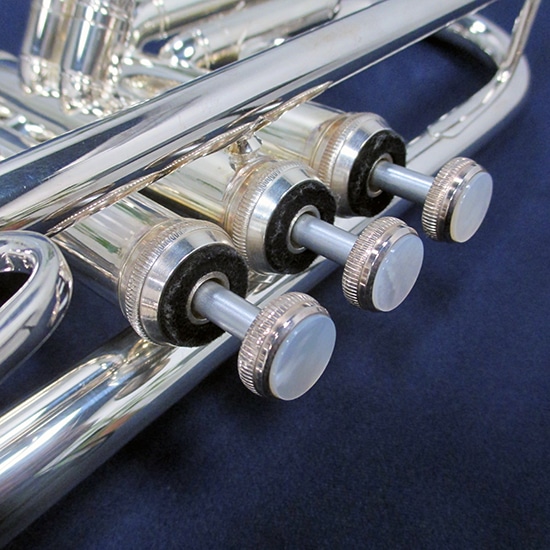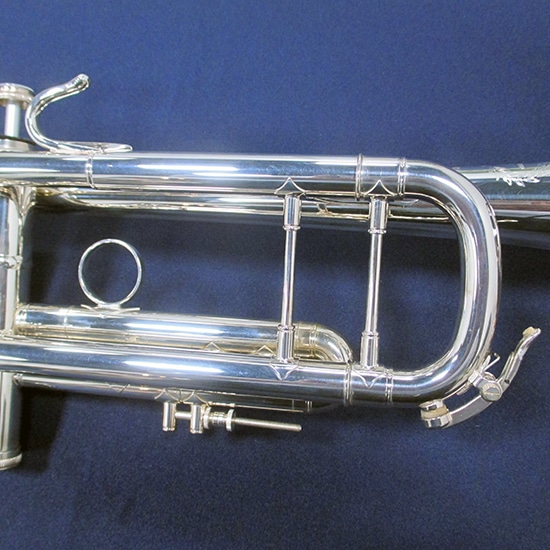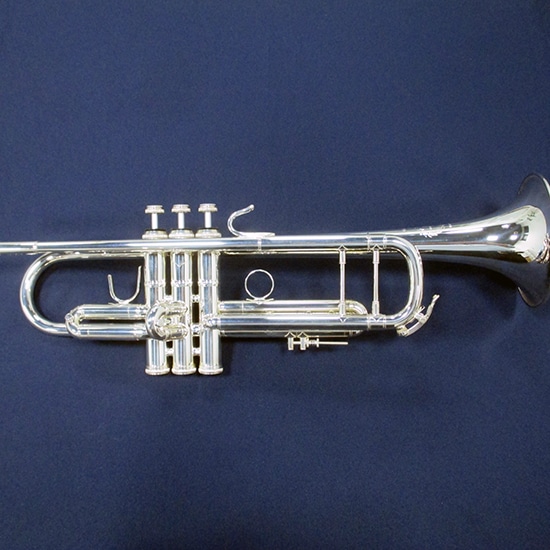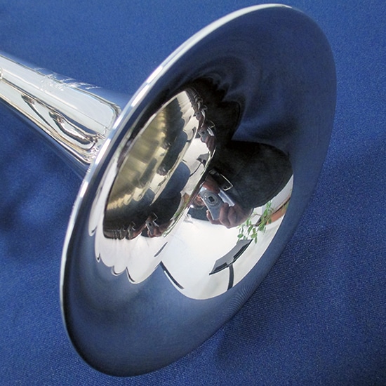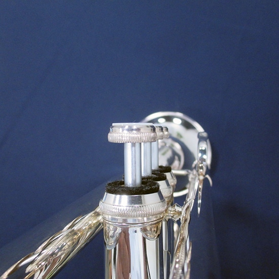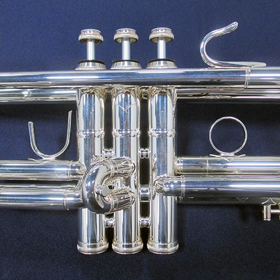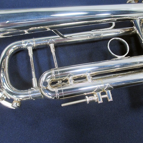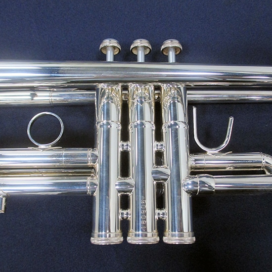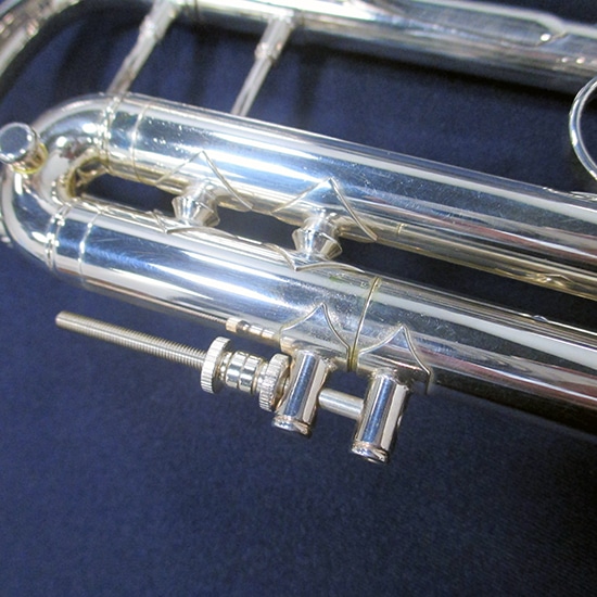 B♭、イエローブラスベル、銀メッキ仕上げ、ボアML(11.66mm)、ベル121.5mm、ハンドハンマーリングワンピースベル、イエローブラスマウスパイプ、モネルメタルピストン、内包式ブロンズスプリング