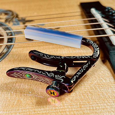 弦やピック、カポタスト、ストラップ、メンテナンス用品といったアクセサリー類や、楽譜も充実。