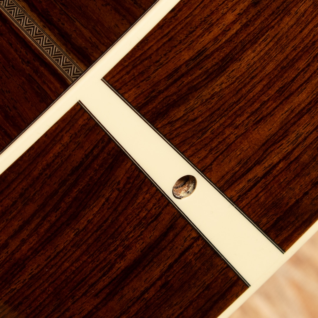 現マーチン工場の中でも、卓越した技術と豊富な経験から至極のギターを造り出す"Martin Custom Shop"。ここ数年一際話題を集めるオーセンティックシリーズの製作をはじめ、高い完成度を誇るこだわりのカスタムモデルを製造するトップクラスの部門。本器はトップ材にVTSが施されたプレミアムグレードのスイススプルースを、サイド&バックにプレミアムグレードのグアテマラローズウッド採用した”CTM D-28 European Top”。スイススプルーストップ、グアテマラローズウッドサイド&バック、ブラックエボニー指板&ブリッジ、モディファイドVシェイプセレクトハードウッドネック、ウェイバリーオープンバックペグ 、べっ甲柄ピックガード、ダイヤモンド&スクエア指板インレイ、1940オーセンティックジグザグバックストリップ、オールドスタイルゴールドデカールヘッドロゴ、2wayアジャスタブルロッド、ゴールデンエラスタイルのフォワードシフテッド・スキャロップドXヨーロピアンスプルースブレイシング、マーキススタイルホワイト&ブラックロゼッタ、ロングサドルブリッジ。やや硬質でクリアな音色ながら施されたVTS加工により重厚な音圧も感じられるまさにドンシャリな音色が特徴的な一本。プレミアムグレードの美しいトップ材の質感を存分に味わえるナチュラルカラーもハイクラスモデルとしての趣をより一層高めています。高次元の音圧に一役買っているモディファイドVシェイプのネックが採用されているこちらのモデルは演奏時に手に吸い付くような弾き心地ながらスタンダードラインとの違いをより主張してくれています。スタンダードラインでは満足が出来ない、特別な1本をお探しの方におすすめな1本です。
