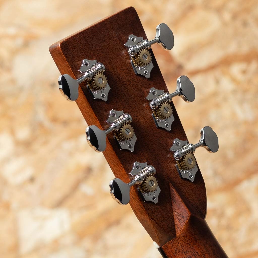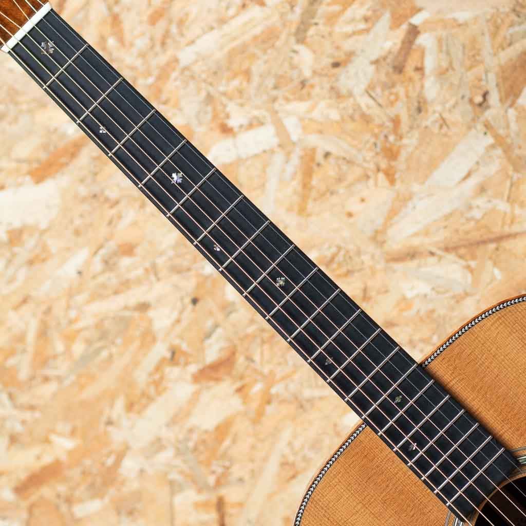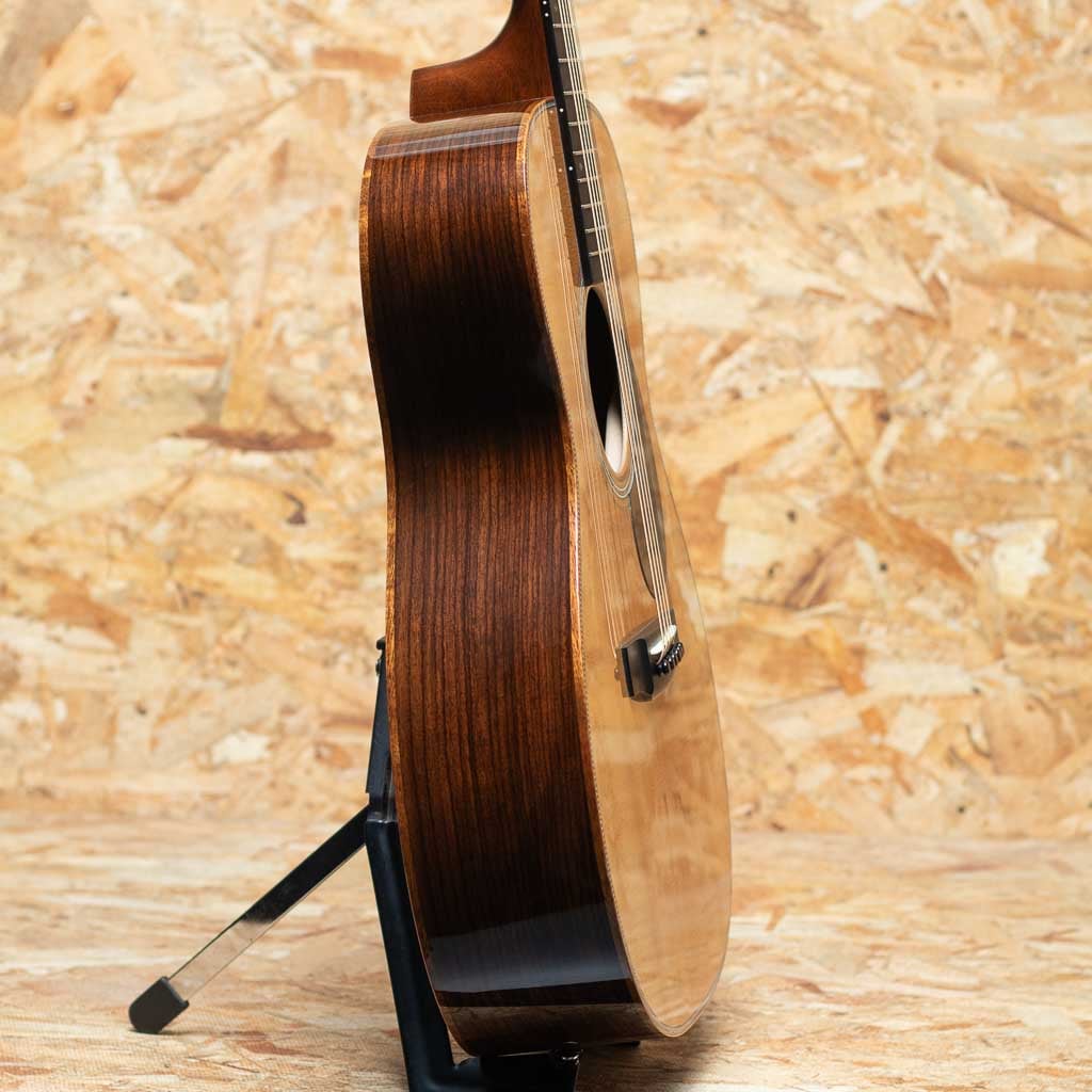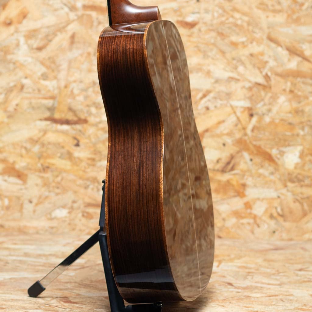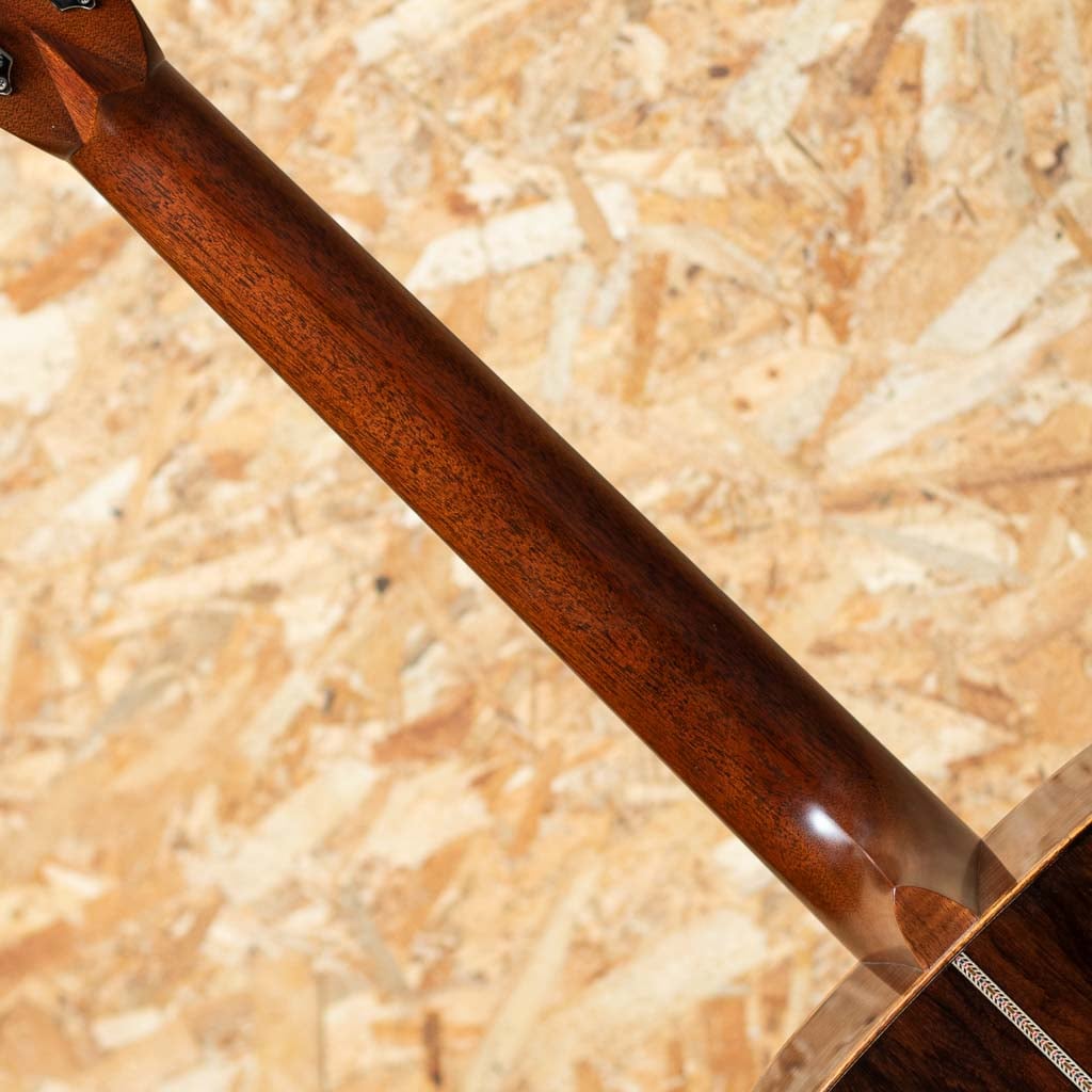 世界に一つだけのカスタムモデル!マーティンカスタムショップ製ギターとはマーティンファクトリー内のほんの一郭にて少数精鋭の熟練職人により手掛けられる超一級ギターのこと。オーセンティックシリーズや、特注品、一点モノのギターなどの生産がそれに当たります。本器はOMサイズボディを基として作成したカスタムモデル。当店スタッフがマーチンファクトリーを訪問した際に買い付けてきた極上の1本。シトカスプルーストップ、ワイルドグレインインディアンローズウッドサイド&バック、マホガニーネック、ブラックエボニー指板&ブリッジ、グローバーペグ、ワイルドグレインローズウッドウッドヘッドプレート、アバロンスプリクトCFMヘッドロゴ、アバロンロゼッタ、ニューデザインのアシンメトリーなアバロンスノウフレーク指板インレイ、フレイムコアウッドバインディング。サイドバックに使用されているワイルドな木目を持つインディアン・ローズウッドは厳選を重ねたプレミアムグレードの材を採用。通常のインディアン・ローズウッドとは一線を画す艶やかな趣を醸しだしています。ネックプロファイルはモディファイド・ロー・オーバル仕様かつハイパフォーマンステーパー仕様。より高い演奏性を持ち、見た目にも実用性にも拘りたい方におすすめの1本に仕上がっています。