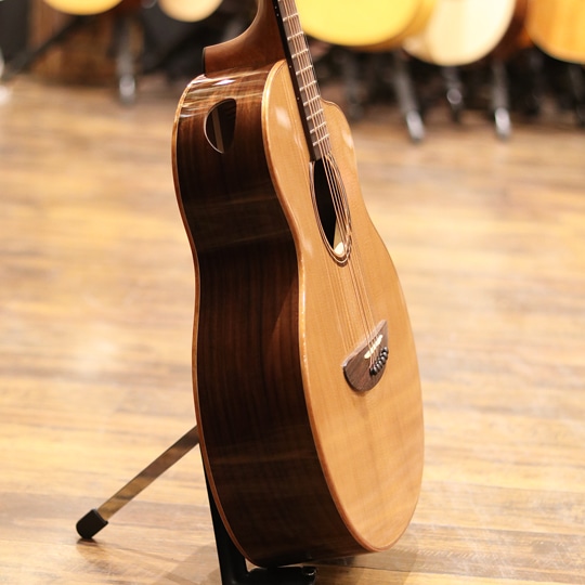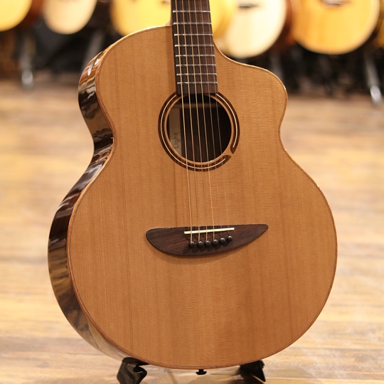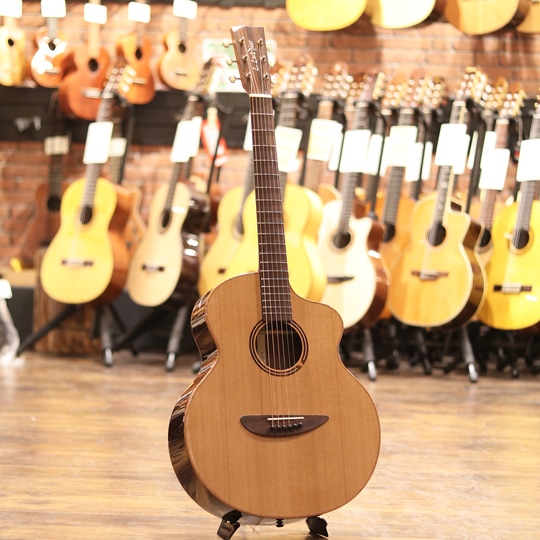 2009年、創始者アドウィン・ライ氏によってマレーシアで誕生した "エル・ルシアー "。デザイン性、コストパフォーマンス性に優れ、ハイクオリティなサウンドとプレイヤビリティを兼ね備えた今注目のアコースティックギターブランドです。本器はやや小ぶりなボディの上位モデル”Eden Light”。シダートップ、インディアンローズウッドサイド&バック、マホガニーネック、ローズウッド指板&ブリッジ、アンティークな風合いのオリジナルペグ、ベネチアンカッタウェイ、ラティスブレーシング。コンパクトなボディとショートスケールで扱いやすく、薄めのネックシェイプでハイポジションまでの運指も容易。優れたセットアップで演奏性も抜群です。サウンドポートにはモニター効果、サラウンド効果があり、ダイレクトでエアリーなサウンドが弾き手自身を立体的に包み込み、極上の弾き心地、聴き心地を体感可能。立ち上がりやレスポンスもよく、バランスの良いサウンドです。ジャンル問わずに扱えるようなオールマイティな1本。個性的なルックスを持ちながら、実用的で優れた演奏性、ハイクオリティなサウンドで人気急上昇中の注目株。ギターを楽しむための要素がふんだんに盛り込まれた上位機種。持ち運びにも便利なギグケース付属です。