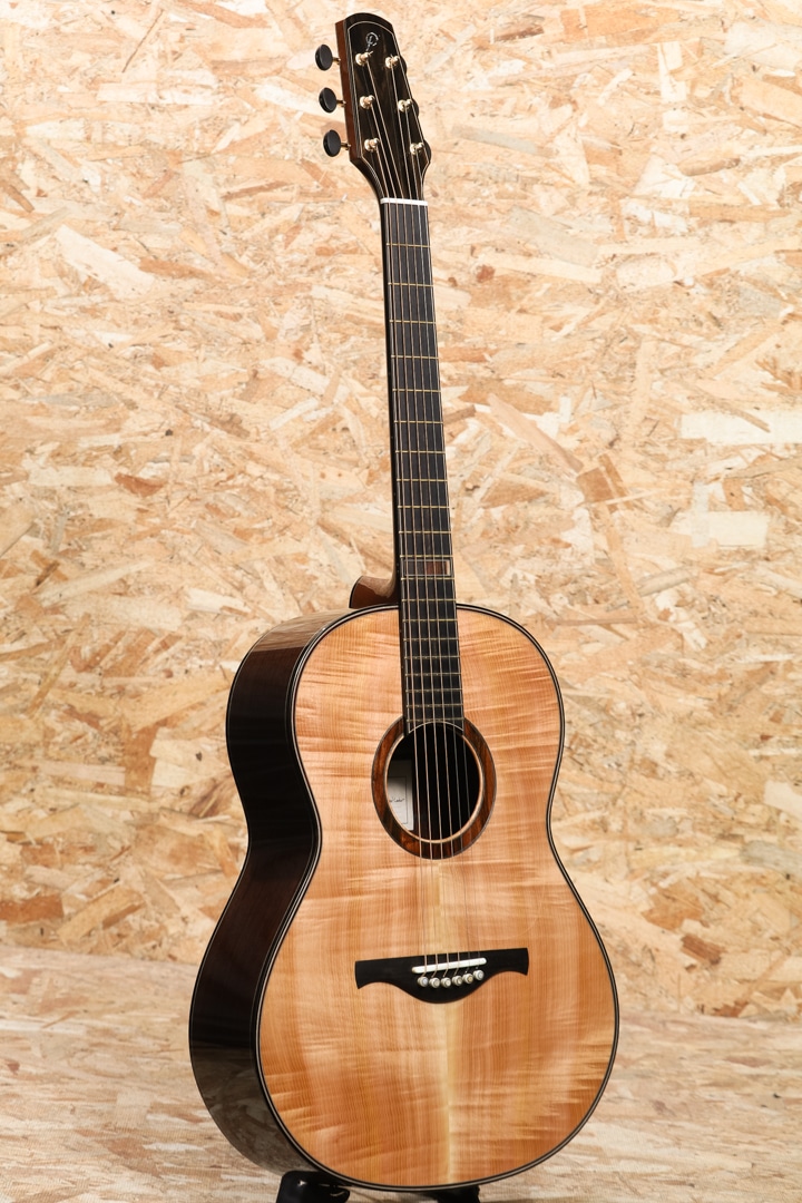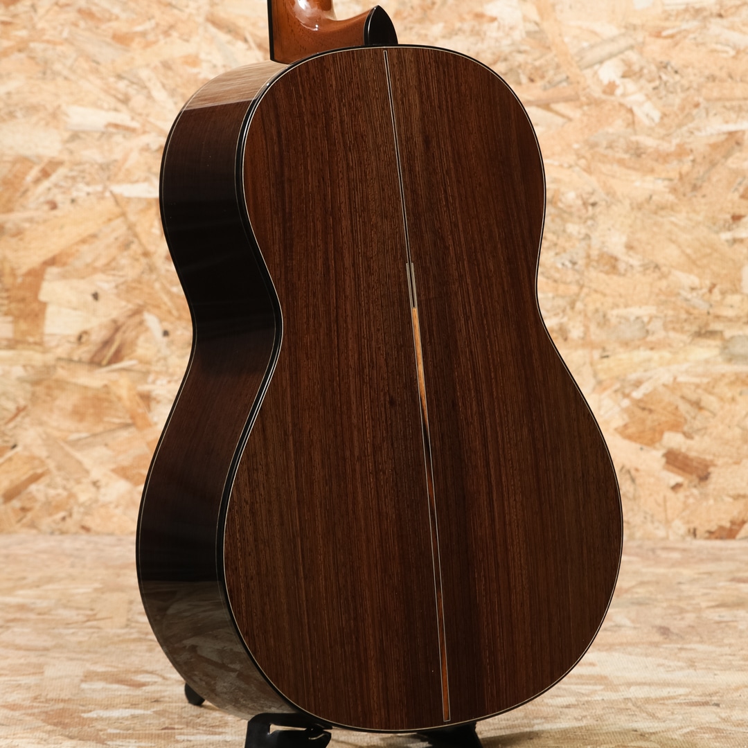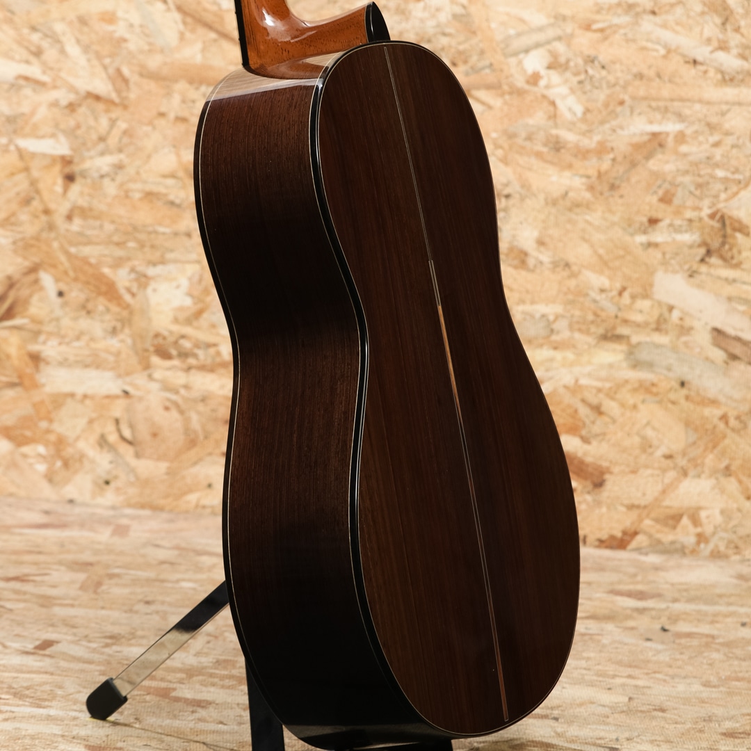 クラシック・ギタリストが演奏する場合でも自身のコンフォートゾーンから外れることなく演奏できるように設計したという本器は14フレットジョイントの優れた音のピッチとテンション感を維持しながらもまるで12フレットジョイントのような暖かく甘いサウンド。特に深くまるで沈み込むかのように広がる低音をベースにシルキーで艶のある高音が合わさった際の心地よさは格別です。