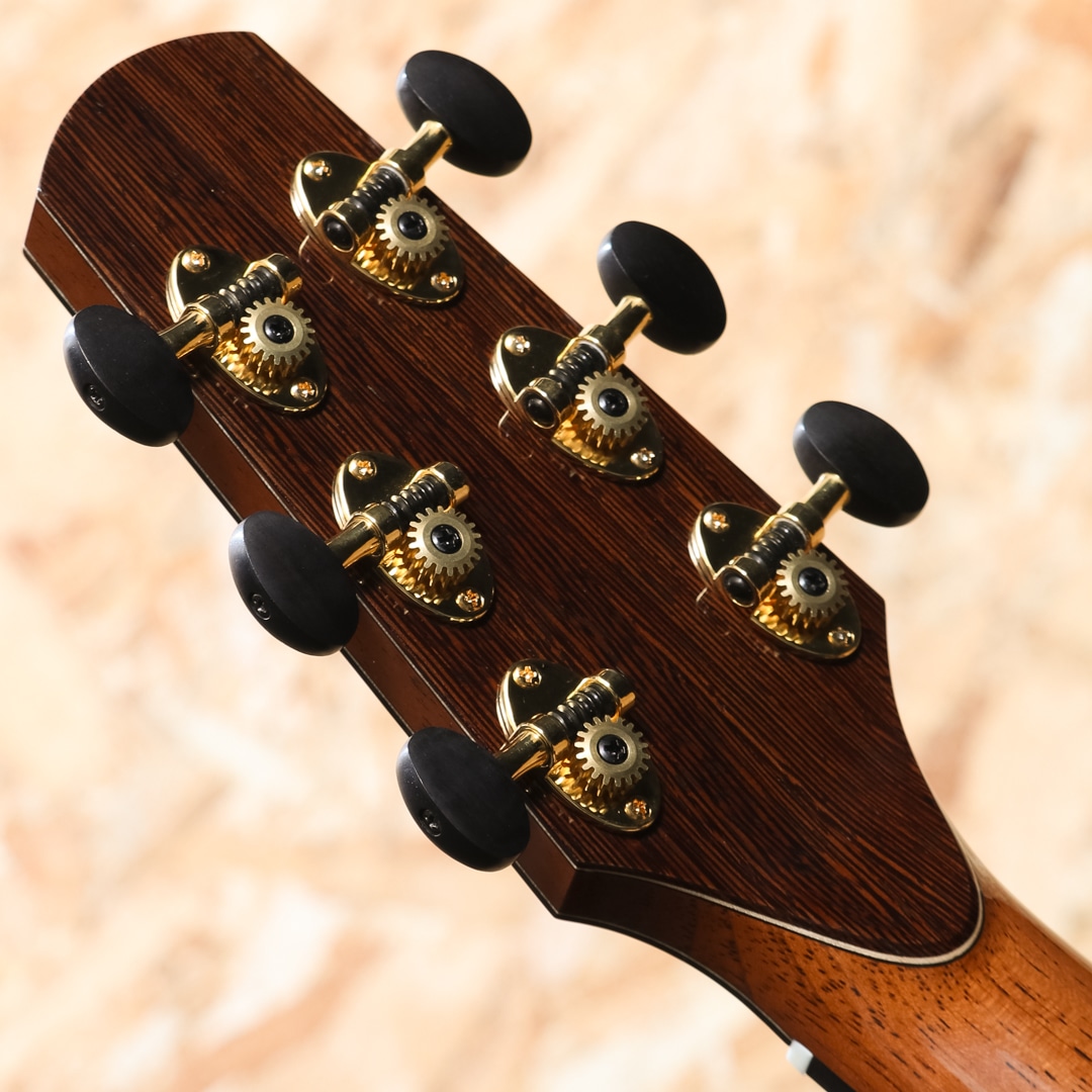 サイドには黒染したアディロンダックスプルース(内側)とウェンジのダブルレイヤード構造を採用。単板同士をかけ合わせる事により、単板ならでは音のふくよかさを保ちながらも製作家の理想とする重量や強度、剛性を調整出来る人気の仕様です。
