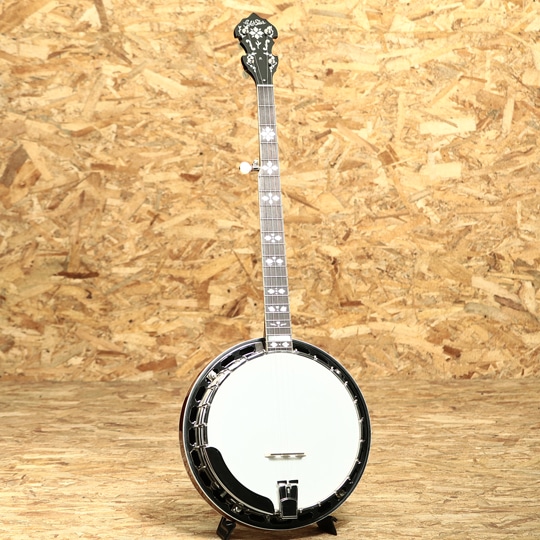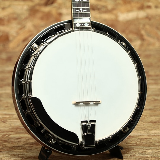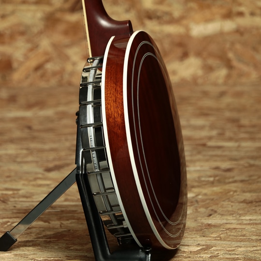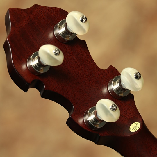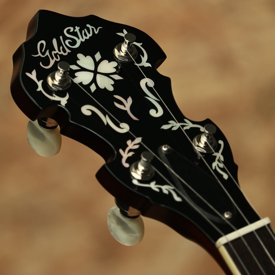 1970年代、ブルーグラス・シーンを席巻したGold Starバンジョー。 マホガニーネック、サントスローズウッド指板にHearts&Flowerインレイ、3plyメイプルリム&マホガニーリゾネーター、Hearts&Flowersインレイ、1pcフランジ、20Holeフラットヘッドトーンリング、プレストテールピースというプリウオースタイルにこだわりぬいた仕様です。ハードウェアーはもちろんニッケル仕上げ。1930年代に作られたフラットヘッド・バンジョーへの頑固なポリシーは、現代においても健在です。マホガニーリゾネーターならではの立ち上がりの良さと疾走する様なドライブ感を感じられ、暖かみのあるトーンはブルーグラスシーンで求められるサウンドを持ち合わせています。