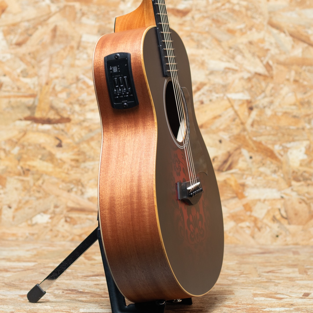 洗練されたデザインと他ブランドを凌ぐ演奏性、そして抜群に安定したクオリティで今やアコースティックギターの定番の1つとなっている"Taylor"。プレイアビリティに対する拘りとピックアップを含めた革新的な技術は、常に業界に影響を及ぼし続けています。本器はNAMM Showにて発表された”GS Mini-e Special Edition Victorian Burst”。世代を問わず愛用されるGS-miniシリーズ、限定カラーモデルです。トリファイドシトカスプルーストップ、サペリサイド&バック、トロピカルマホガニーネック、エボニー指板&ブリッジ、パール指板インレイ、ブラックピックガード。そのサイズ感から体格を選ばず抱えやすく、気軽に構えることが可能。持ち運ぶ際にも大きさを感じにくいため気軽に持ち出すことができます。生音はこのサイズながらしっかりとしたボリューム感。ローズウッドの仕様から重厚さを感じられる低音感や上品な高音成分を感じることが出来、煌ピック弾きや指弾き問わず様々なスタイルやジャンルで心地よい演奏を楽しむことができます。ピックアップにはTaylor社独自のES-Bを搭載しており、本格的な演奏活動にもしっかりと対応出来る1本です。