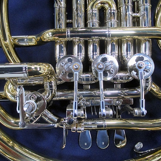 F/B♭フルダブル/材質:イエローブラス/ベルカット/ラッカー仕上げ/ボールジョイントアクション/ベルサイズ:エクストララージベル