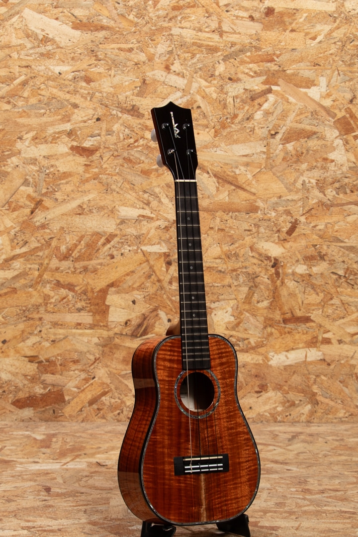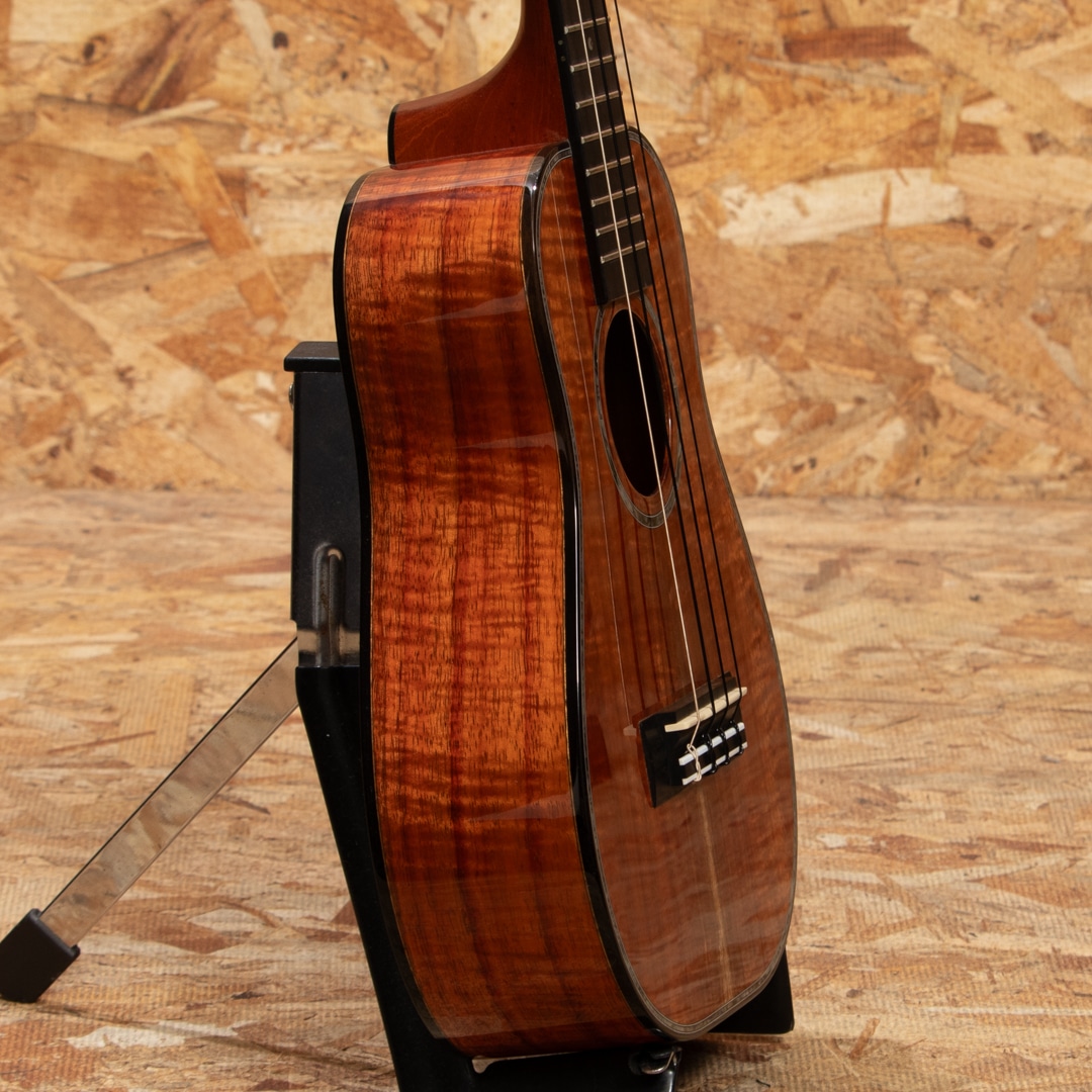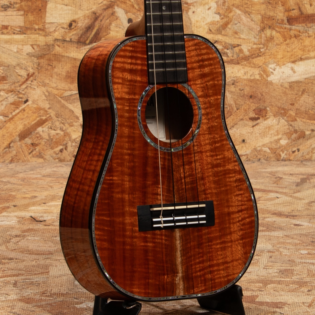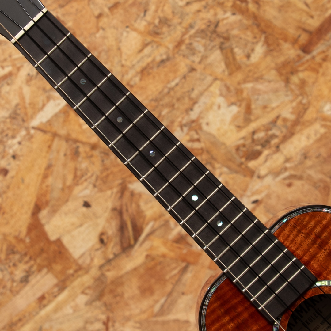 1916年にサミュエル・K・カマカが創業して以来、熟練した職人技と徹底した品質管理を誇りハワイアンウクレレメーカーのトップブランドとしての地位に君臨し続ける「カマカウクレレ」。本器は世界的なウクレレ奏者オータサンことハーブオオタ氏のモデルのデラックスモデル"HB-2D2"。2021年から新しく発売となったモデルです。杢目の美しいフィギャードハワイアンコアボディ、マホガニーネック、エボニー指板&ブリッジ、ゴトー製プラネタリーペグ。ロープデザインの装飾がアバロンになり、より高級感あふれるルックスとなっています。ベルシェイプ、コンサートセミロングスケールというカマカの中でも特殊な仕様で、音色のふくよかさと張りの具合が絶妙でソロウクレレに最適なモデルです。