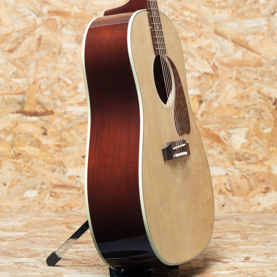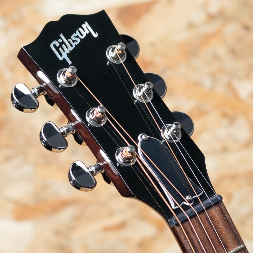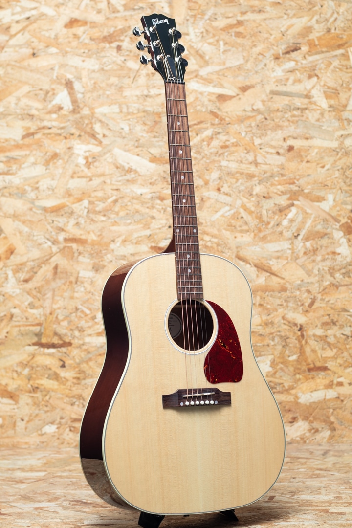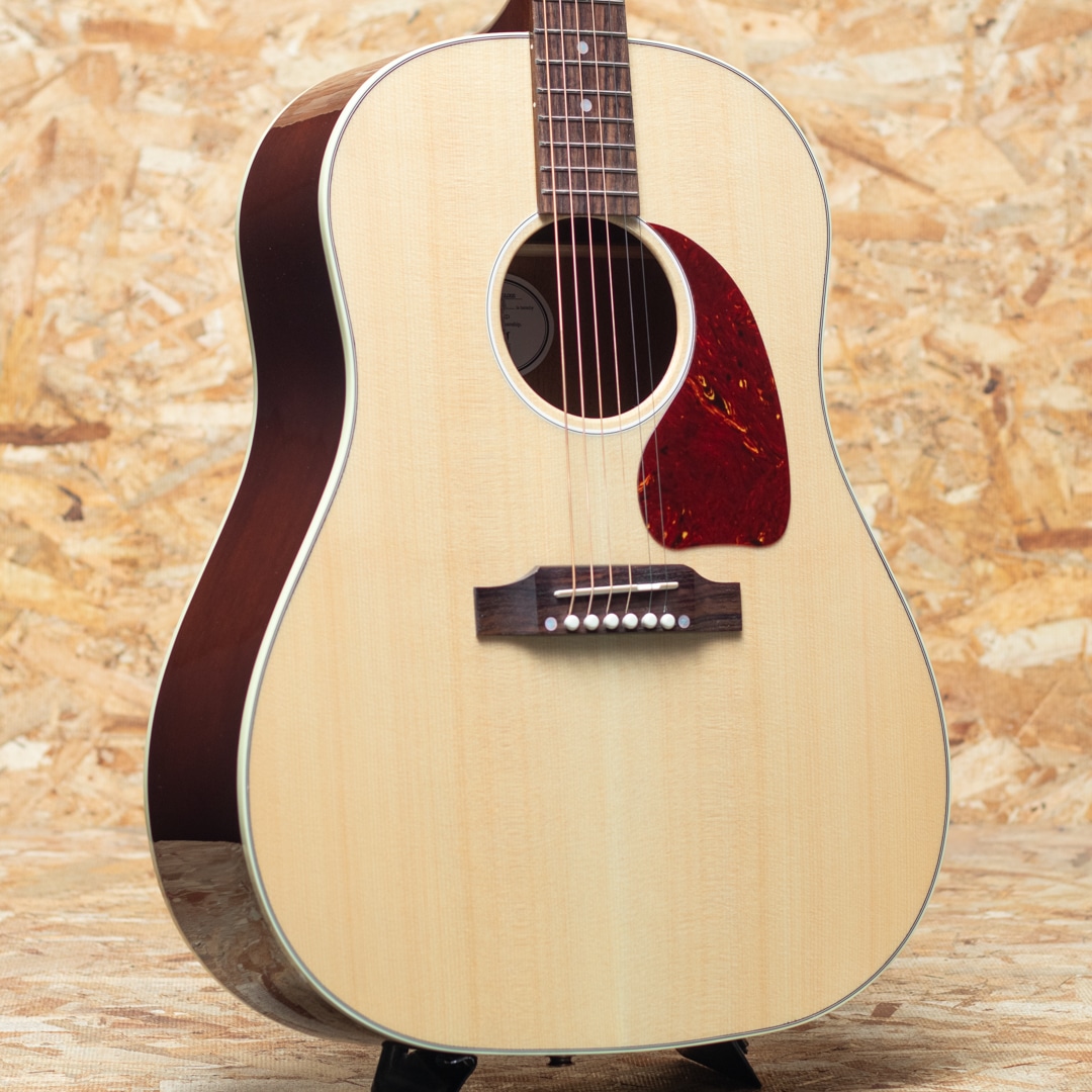 "The Workhorse(頼りになる馬車馬)" の愛称で信頼されるベストセラー・モデル。ウォームな低域とエッジの効いた中高域が織りなす優れた表現力でプレイヤーを支え、どんなときにも信頼できるパートナーとして1942年の登場以来、ギブソン・ラウンド・ショルダー・ラインナップの中心的役割を担い続ける”J-45”。基本的なスタイルは継承されつつもマイナーチェンジを繰り返し、年々進化し続けております。本器は日本国内向けエクスクルーシブモデルとして限定50本のみ製作される"J-45 Standard Natural Gloss"。シトカスプルーストップ、マホガニーサイド&バック、マホガニーネック、ローズウッド指板&ブリッジ、グローバーペグ、MOP指板ドット、べっ甲柄スモールガード、スキャロップド・Xブレイシング、L.R.Baggs Element VTCピックアップ標準装備。同じくナチュラルトップのJ-50と混同しそうになりますが、グローバーペグにべっ甲柄スモールガードを装備したJ-45 Standardのカラーチェンジモデルとなっています。ブライトで気っ風の良いレスポンス、ドライでどこか泥臭さを感じさせる倍音、外観と違わぬ荒削りなサウンド。発表以来、数々の名演を支えてきた"J-45"、移りゆく時代の中でも変わらぬ憧れと同時に一味違った趣を放つ一本です。