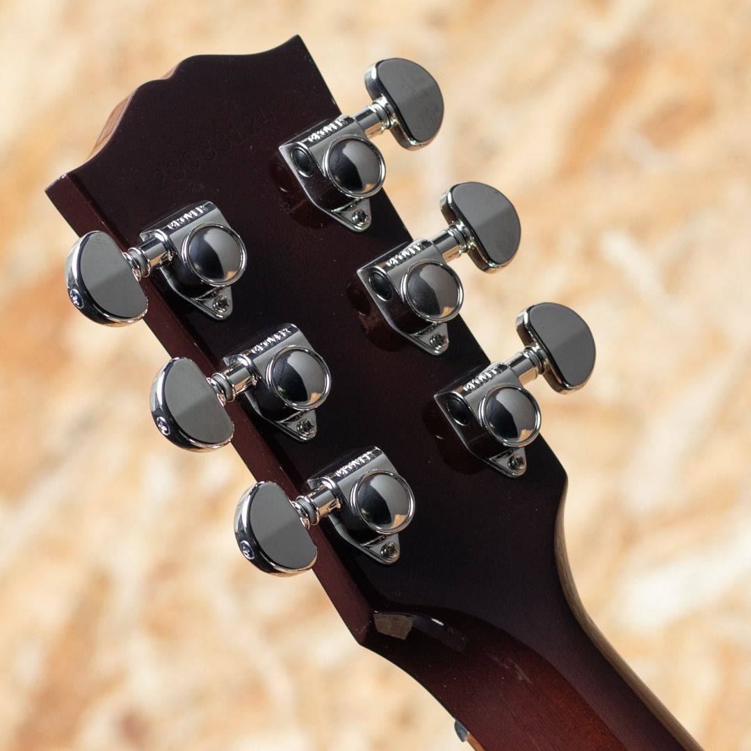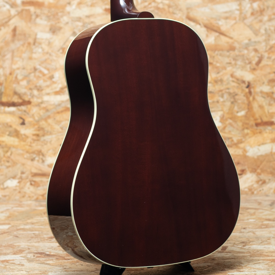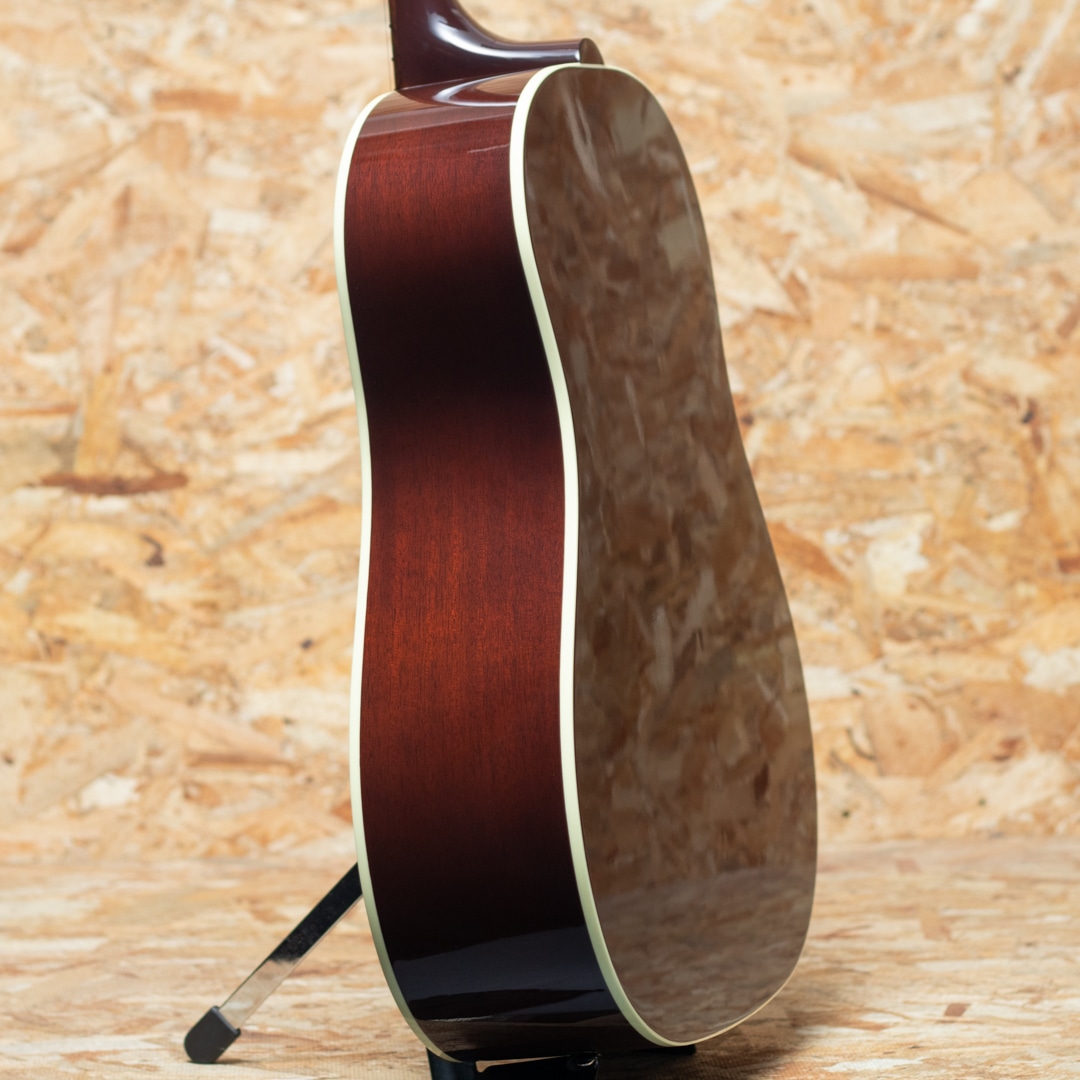 "The Workhorse(頼りになる馬車馬)" の愛称で信頼されるベストセラー・モデル。ウォームな低域とエッジの効いた中高域が織りなす優れた表現力でプレイヤーを支え、どんなときにも信頼できるパートナーとして1942年の登場以来、ギブソン・ラウンド・ショルダー・ラインナップの中心的役割を担い続ける”J-45”。基本的なスタイルは継承されつつもマイナーチェンジを繰り返し、年々進化し続けております。本器は日本国内向けエクスクルーシブモデルとして限定50本のみ製作される"J-45 Standard Natural Gloss"。シトカスプルーストップ、マホガニーサイド&バック、マホガニーネック、ローズウッド指板&ブリッジ、グローバーペグ、MOP指板ドット、べっ甲柄スモールガード、スキャロップド・Xブレイシング、L.R.Baggs Element VTCピックアップ標準装備。同じくナチュラルトップのJ-50と混同しそうになりますが、グローバーペグにべっ甲柄スモールガードを装備したJ-45 Standardのカラーチェンジモデルとなっています。ブライトで気っ風の良いレスポンス、ドライでどこか泥臭さを感じさせる倍音、外観と違わぬ荒削りなサウンド。発表以来、数々の名演を支えてきた"J-45"、移りゆく時代の中でも変わらぬ憧れと同時に一味違った趣を放つ一本です。