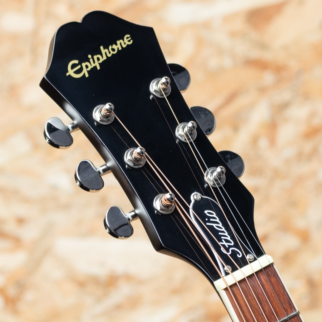 1873年から続くEPIPHONE。非常に長い歴史を持ち、屈指の老舗ブランドの1つとして今でも製造を続けているブランドです。ギブソン直系のブランドとして伝統的なスタイルからモダンなデザインのモデルまで多様なラインナップを揃え、そのコストパフォーマンスの高さ、ギブソン譲りのルックス等から幅広い世代に人気を博しています。本器はGIBSONの名機J-45を基にしたモデル"J-45 Studio Sunburst"。シトカスプルース単板トップ、マホガニーサイド&バック、マホガニーネック、インディアン・ローレル指板&ブリッジ、グローバーペグ、べっ甲柄ピックガード、ヴィンテージサンバーストカラー。本家J-45のボディ幅を持ちながら、ボディの厚みはやや薄く。またラウンドショルダー(なで肩)シェイプの為、大きさを感じず抱えやすいサイズ感。ネック自体も薄めに成形されており、演奏スタイルを問わない演奏性を与えられています。これから始めて持つ方にもオススメできる演奏性を持ったギターです。